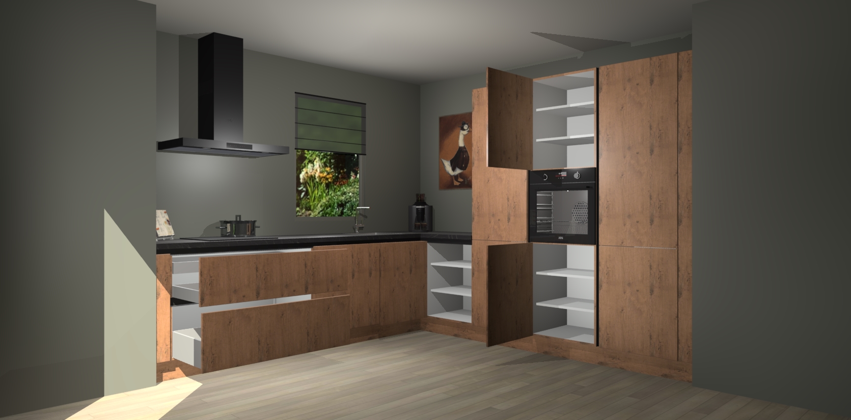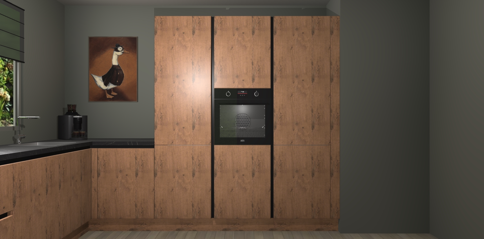 Welkom bij de Astoria Eiken greeploze keuken Laos. Deze prachtige keuken zal de komende jaren het middelpunt van de belangstelling in uw huis zijn. Uitgerust met vijf inbouwapparaten komt u nooit kookgereedschap tekort. Bovendien geeft de warme houtlook elke ruimte een uitnodigende en tijdloze uitstraling.
