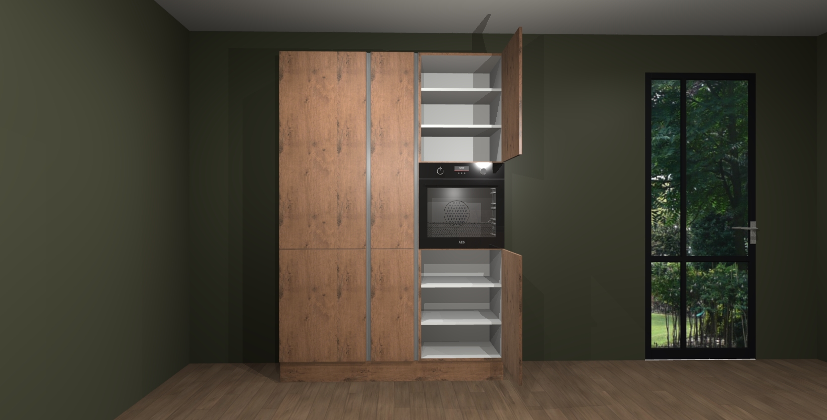 Met een modern, tijdloos design en ruime opslagruimte, zult u zich in no-time thuis voelen in uw nieuwe keuken. Uw leven wordt eenvoudiger met de soft-close deuren die voor het ultieme stille comfort zorgen - geen geluid dat u stoort terwijl u kookt. Ook is de keuken voorzien van 5 ingebouwde apparaten: een oven, inductie kookplaat, afzuigkap, vaatwasser en koelkast. Deze kunnen gemakkelijk na bestelling worden bijgewerkt naar AEG - waardoor uw luxe ervaring compleet is.