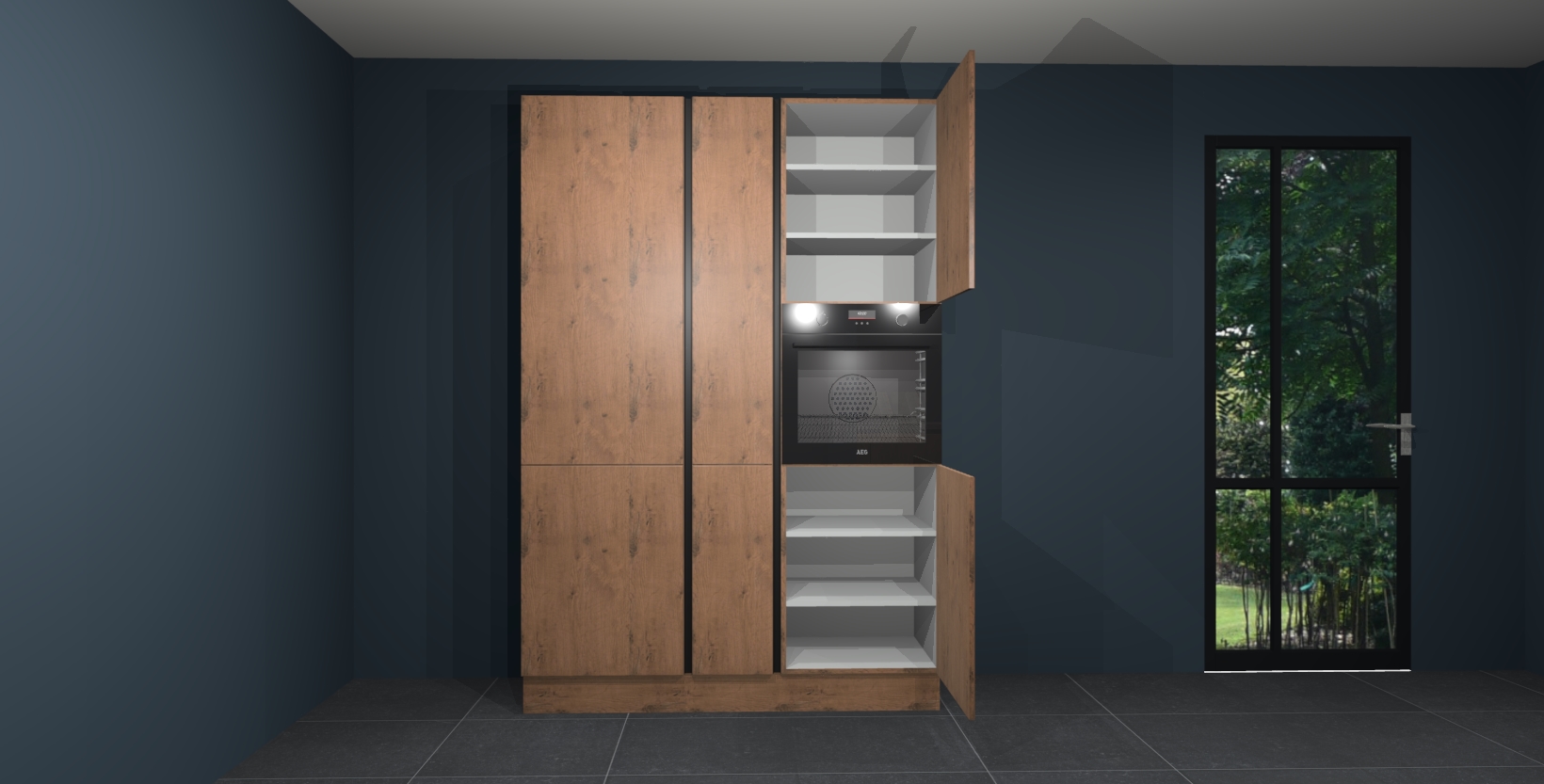 Met een modern, tijdloos design en ruime opslagruimte, zult u zich in no-time thuis voelen in uw nieuwe keuken. Uw leven wordt eenvoudiger met de soft-close deuren die voor het ultieme stille comfort zorgen - geen geluid dat u stoort terwijl u kookt. Ook is de keuken voorzien van 5 ingebouwde apparaten: een oven, inductie kookplaat, afzuigkap, vaatwasser en koelkast. Deze kunnen gemakkelijk na bestelling worden bijgewerkt naar AEG - waardoor uw luxe ervaring compleet is.