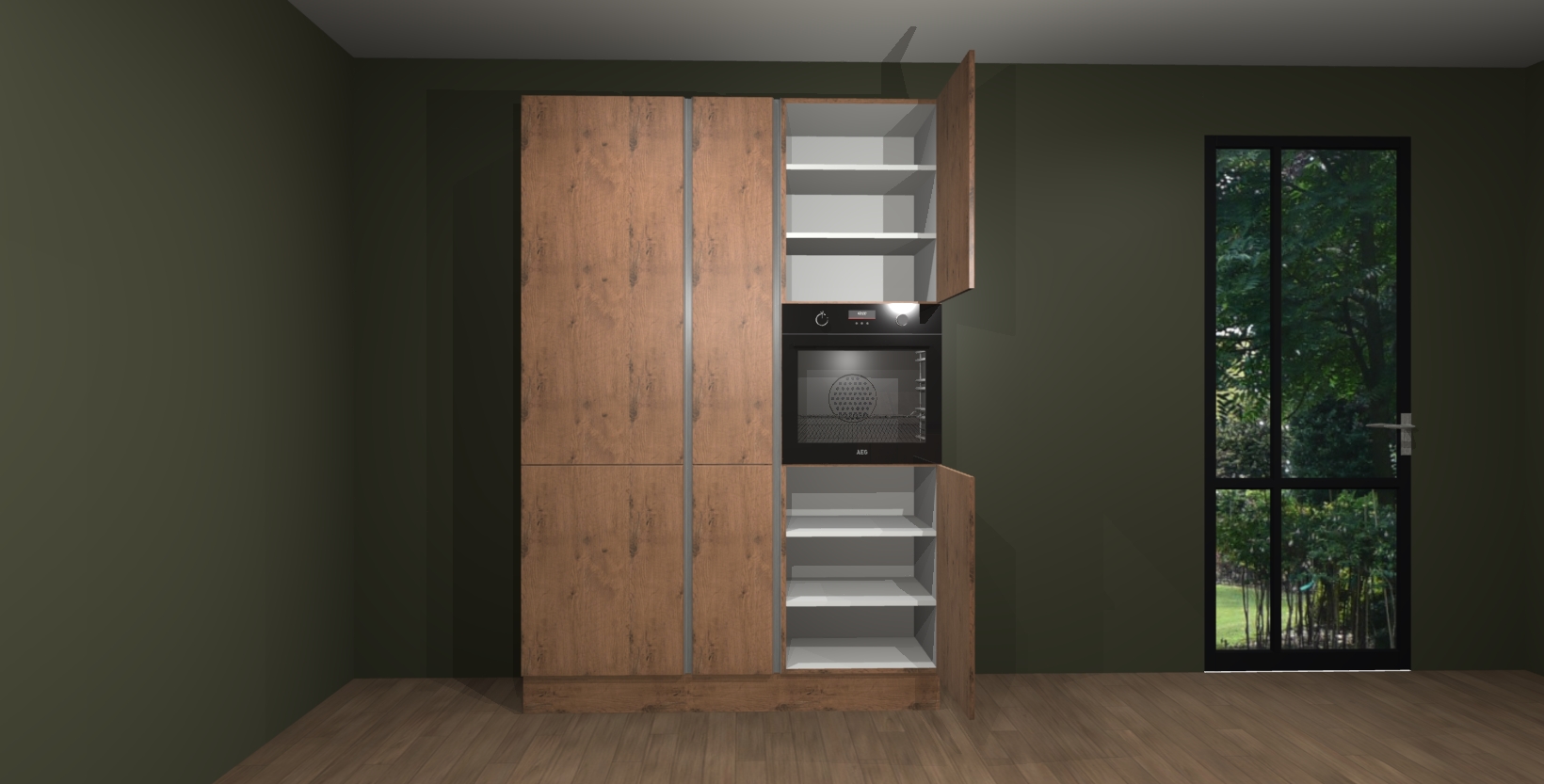 Met een modern, tijdloos design en ruime opslagruimte, zult u zich in no-time thuis voelen in uw nieuwe keuken. Uw leven wordt eenvoudiger met de soft-close deuren die voor het ultieme stille comfort zorgen - geen geluid dat u stoort terwijl u kookt. Ook is de keuken voorzien van 5 ingebouwde apparaten: een oven, inductie kookplaat, afzuigkap, vaatwasser en koelkast. Deze kunnen gemakkelijk na bestelling worden bijgewerkt naar AEG - waardoor uw luxe ervaring compleet is.