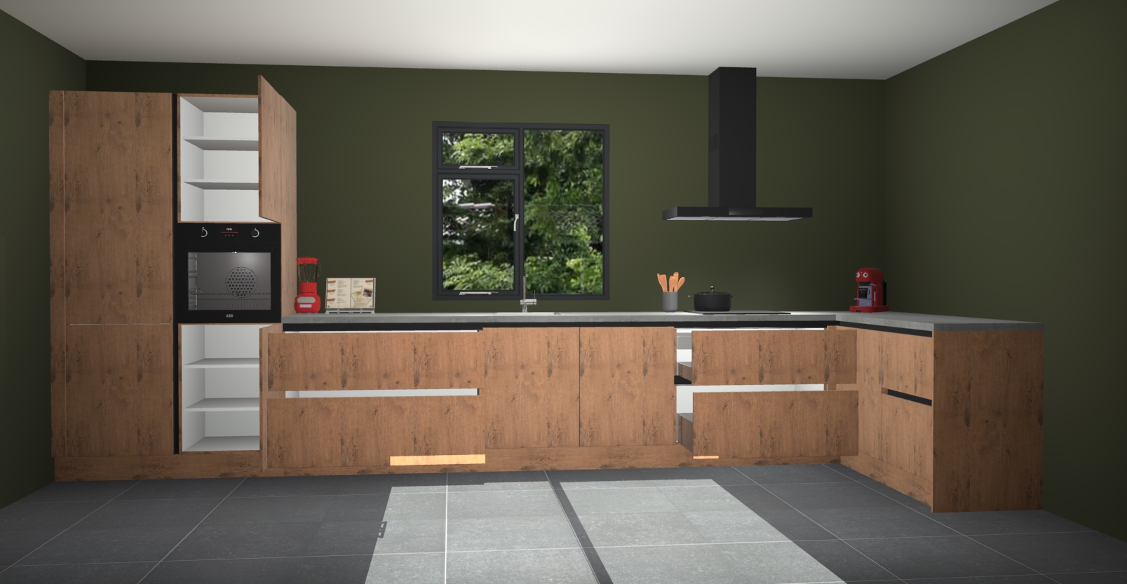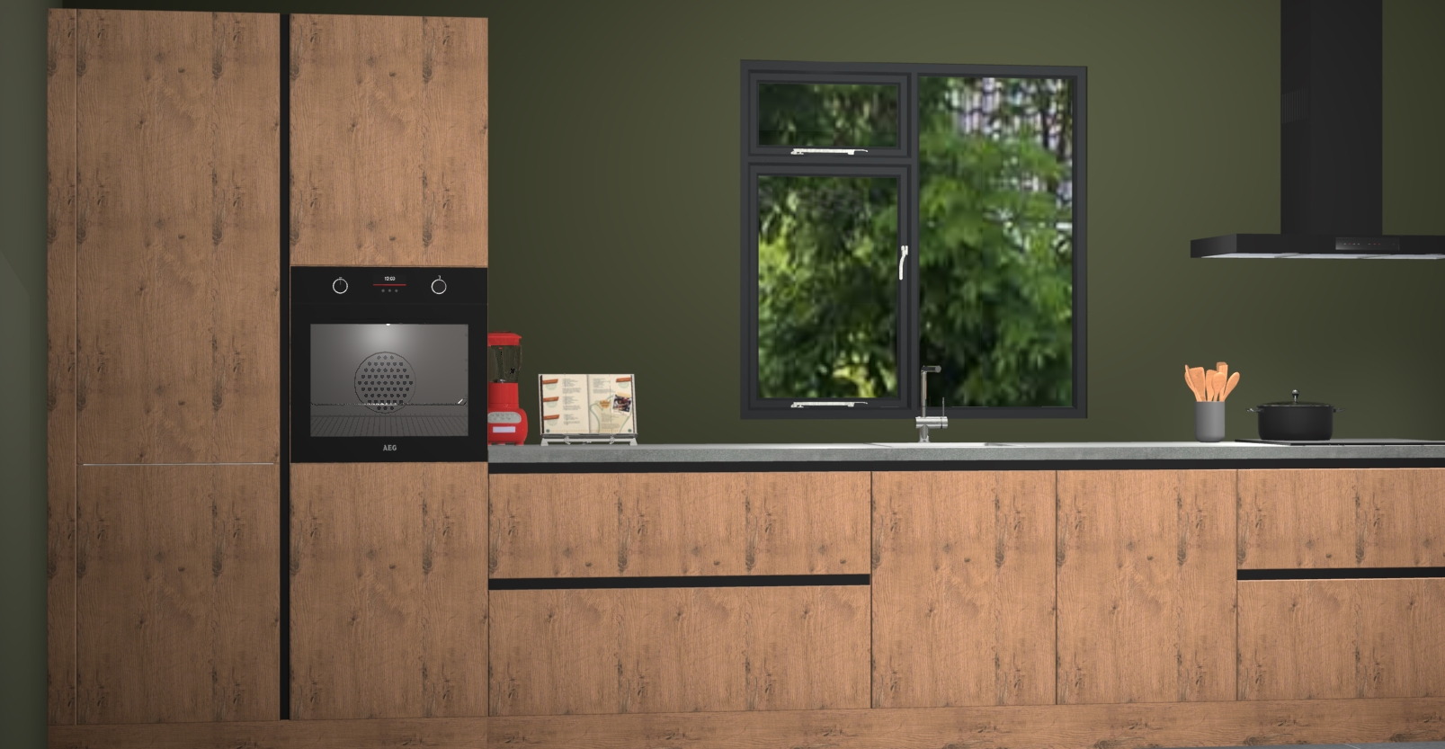 De Astoria eiken keuken Lille wordt geleverd met vijf inbouwapparaten - een oven, inductiekookplaat, afzuigkap, vaatwasser en koelkast. Maar dat is nog niet alles! Na bestelling kunnen deze apparaten eenvoudig worden geüpgraded naar premium AEG-apparatuur. Bovendien is er zelfs de optie om de oven te vervangen door een combimagnetron of uw inductiekookplaat te vervangen door een kookplaat met geïntegreerde afzuiging.