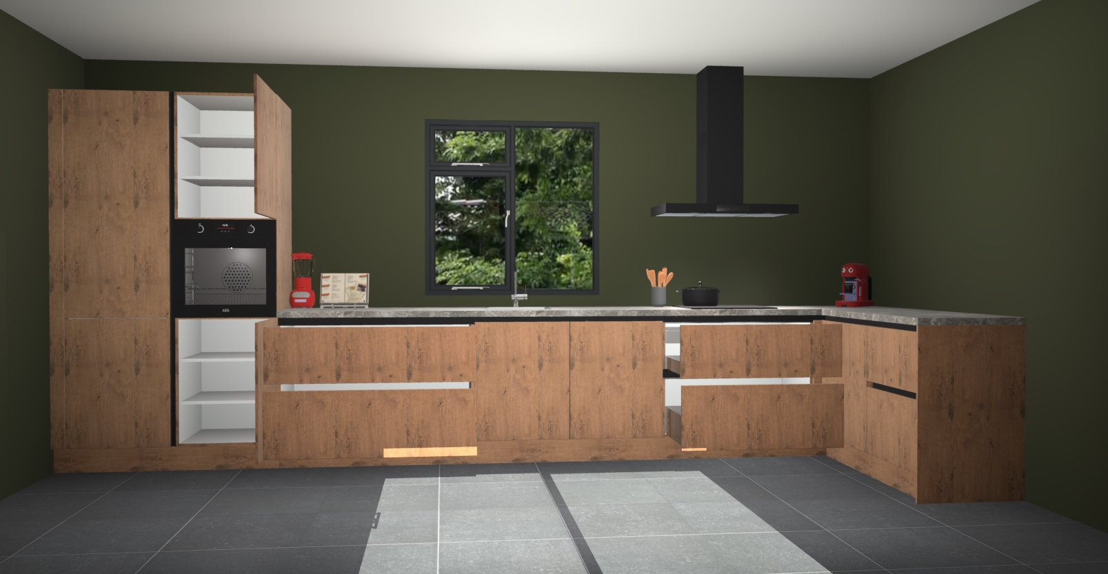 Wilt u uw keuken upgraden en de perfecte moderne toets geven? Kijk dan niet verder dan de Astoria eiken keuken Lille. Deze mega moderne keuken straalt warmte en sfeer uit en is daarmee de perfecte aanvulling voor elke ruimte.