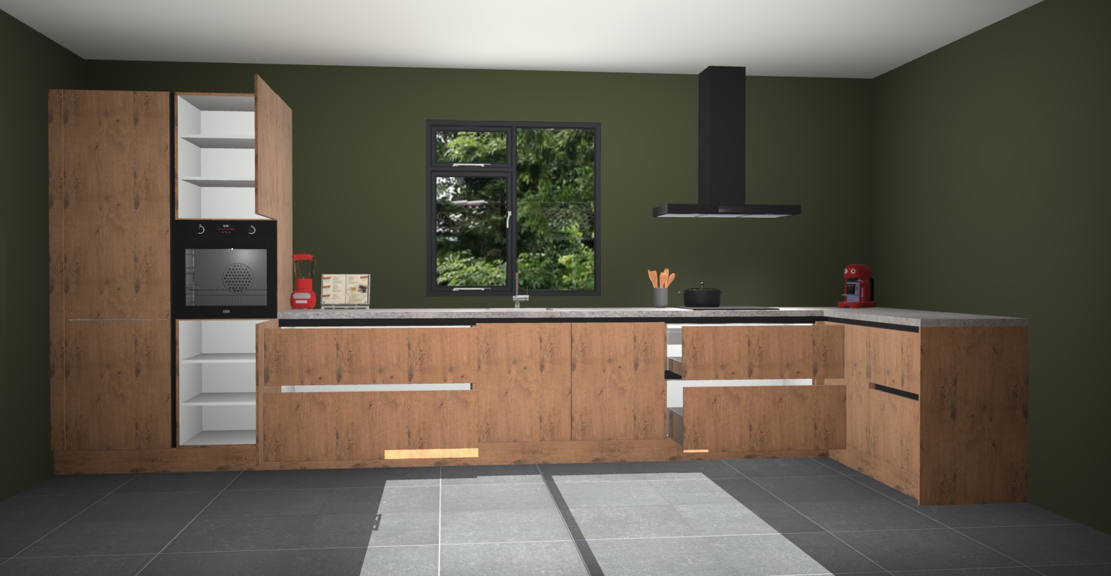 Wilt u uw keuken upgraden en de perfecte moderne toets geven? Kijk dan niet verder dan de Astoria eiken keuken Lille. Deze mega moderne keuken straalt warmte en sfeer uit en is daarmee de perfecte aanvulling voor elke ruimte.