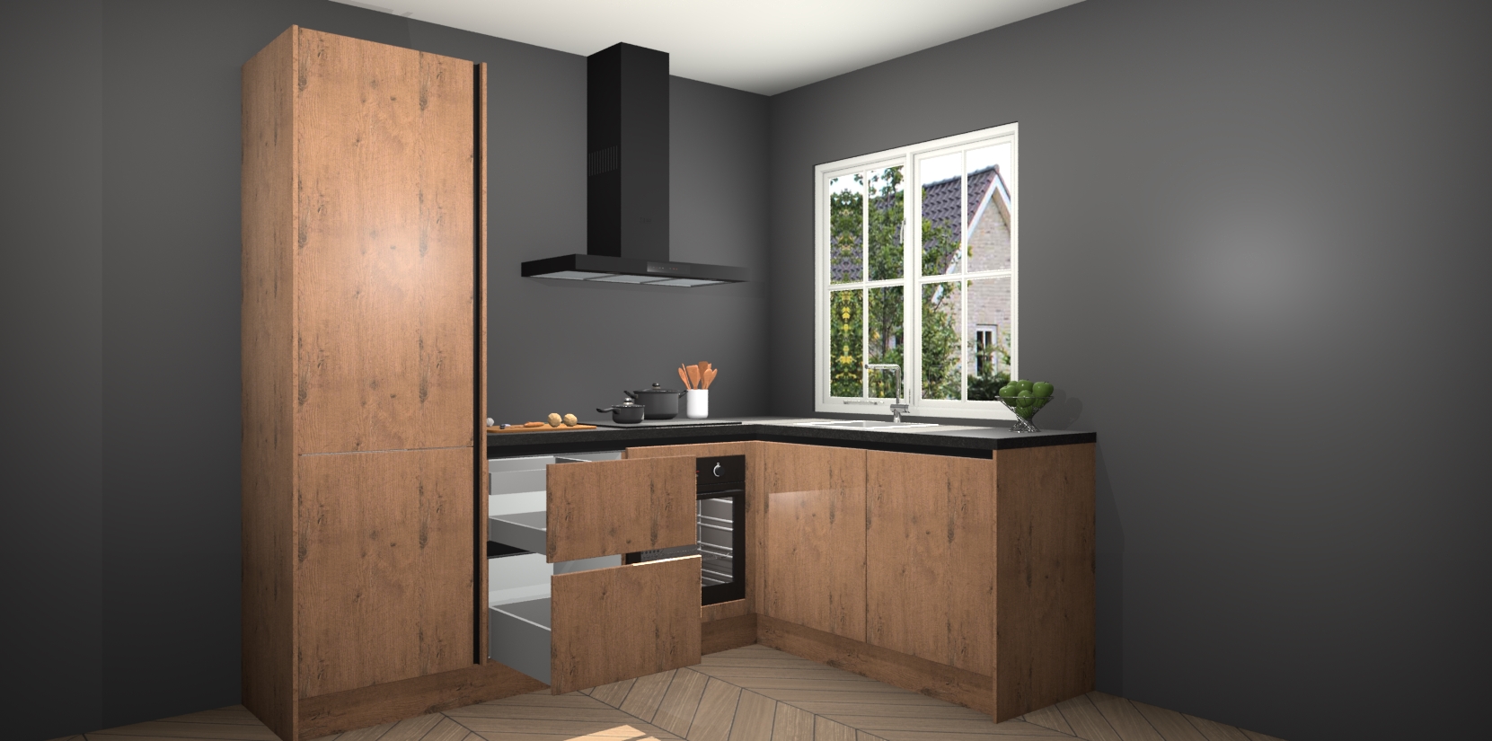 Met de Astoria Eiken greeploze keuken Linz krijgt u 5 op maat gemaakte apparaten: een oven, inductiekookplaat, afzuigkap, vaatwasser en koelkast die na bestelling makkelijk worden geüpgraded naar AEG-producten. Met de zacht sluitende deuren, bent u verzekerd van eenvoudige bediening in stilte. Het kastmeubilair wordt alvast pre-assemblage geleverd waardoor u sneller met het installeren begint. Ook zijn alle deuren voorzien van softclose zodat er geen sporen op de lade blijven als u ze dicht doet. Bovendien hoeft u bij ons geen twijfels of verassingen te hebben: we hebben een vaste lage prijs waardoor u weet wat u mag verwachten bij elke bestelling.