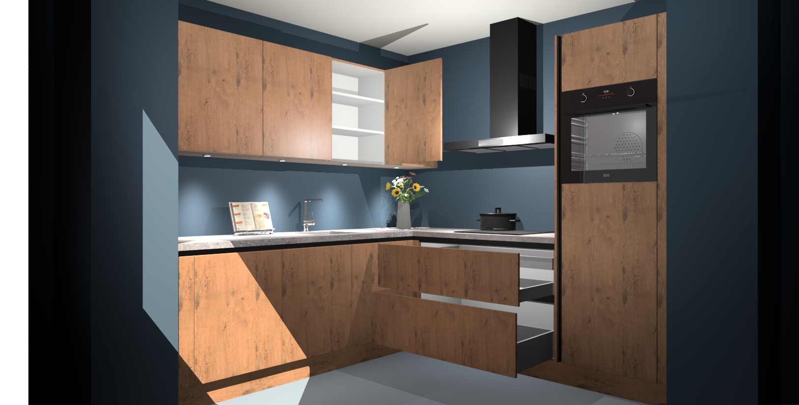 Met een modern, tijdloos design en ruime opslagruimte, zult u zich in no-time thuis voelen in uw nieuwe keuken. Uw leven wordt eenvoudiger met de soft-close deuren die voor het ultieme stille comfort zorgen - geen geluid dat u stoort terwijl u kookt. Ook is de keuken voorzien van 5 ingebouwde apparaten: een oven, inductie kookplaat, afzuigkap, vaatwasser en koelkast. Deze kunnen gemakkelijk na bestelling worden bijgewerkt naar AEG - waardoor uw luxe ervaring compleet is.
