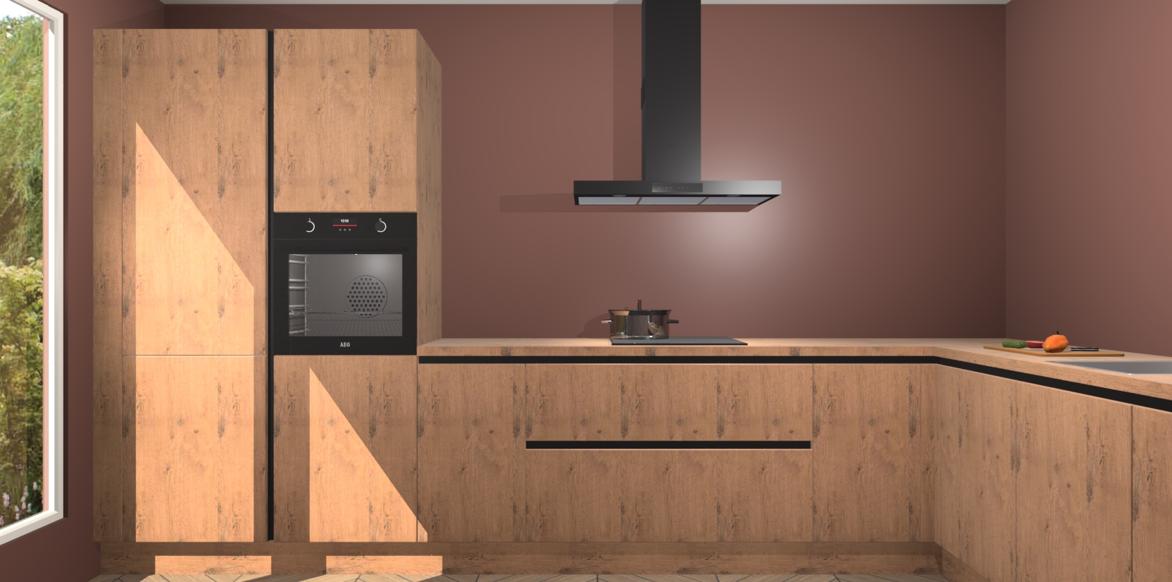 Met een modern, tijdloos design en ruime opslagruimte, zult u zich in no-time thuis voelen in uw nieuwe keuken. Uw leven wordt eenvoudiger met de soft-close deuren die voor het ultieme stille comfort zorgen - geen geluid dat u stoort terwijl u kookt. Ook is de keuken voorzien van 5 ingebouwde apparaten: een oven, inductie kookplaat, afzuigkap, vaatwasser en koelkast. Deze kunnen gemakkelijk na bestelling worden bijgewerkt naar AEG - waardoor uw luxe ervaring compleet is.