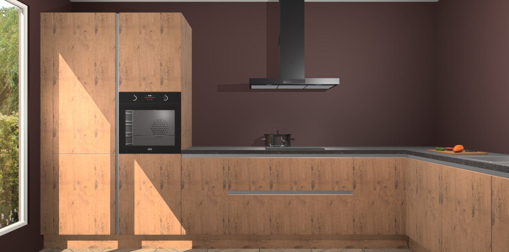 Met een modern, tijdloos design en ruime opslagruimte, zult u zich in no-time thuis voelen in uw nieuwe keuken. Uw leven wordt eenvoudiger met de soft-close deuren die voor het ultieme stille comfort zorgen - geen geluid dat u stoort terwijl u kookt. Ook is de keuken voorzien van 5 ingebouwde apparaten: een oven, inductie kookplaat, afzuigkap, vaatwasser en koelkast. Deze kunnen gemakkelijk na bestelling worden bijgewerkt naar AEG - waardoor uw luxe ervaring compleet is.