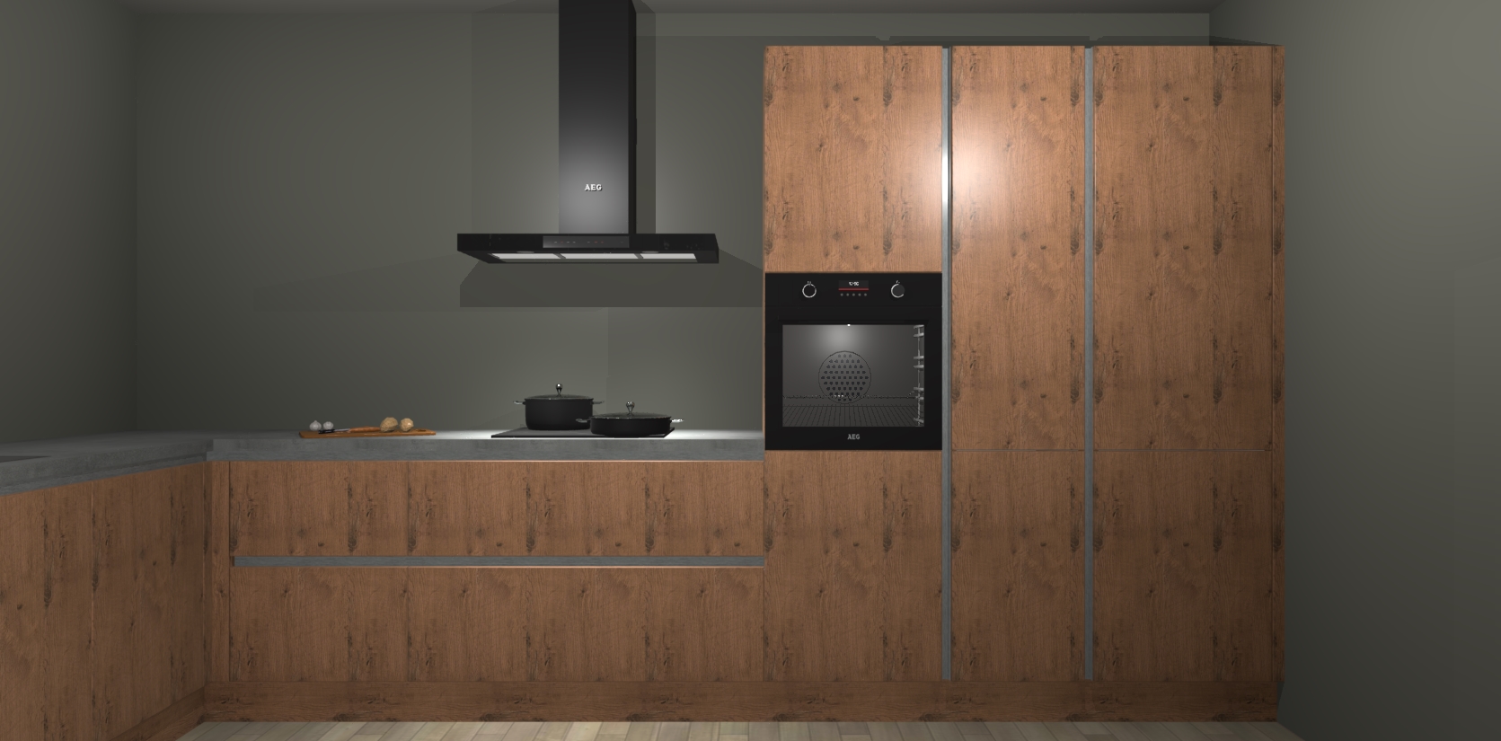 Welkom bij de astoria eiken greeploze keuken Nuuk. Deze prachtige keuken zal de komende jaren het middelpunt van de belangstelling in uw huis zijn. Uitgerust met vijf inbouwapparaten komt u nooit kookgereedschap tekort.