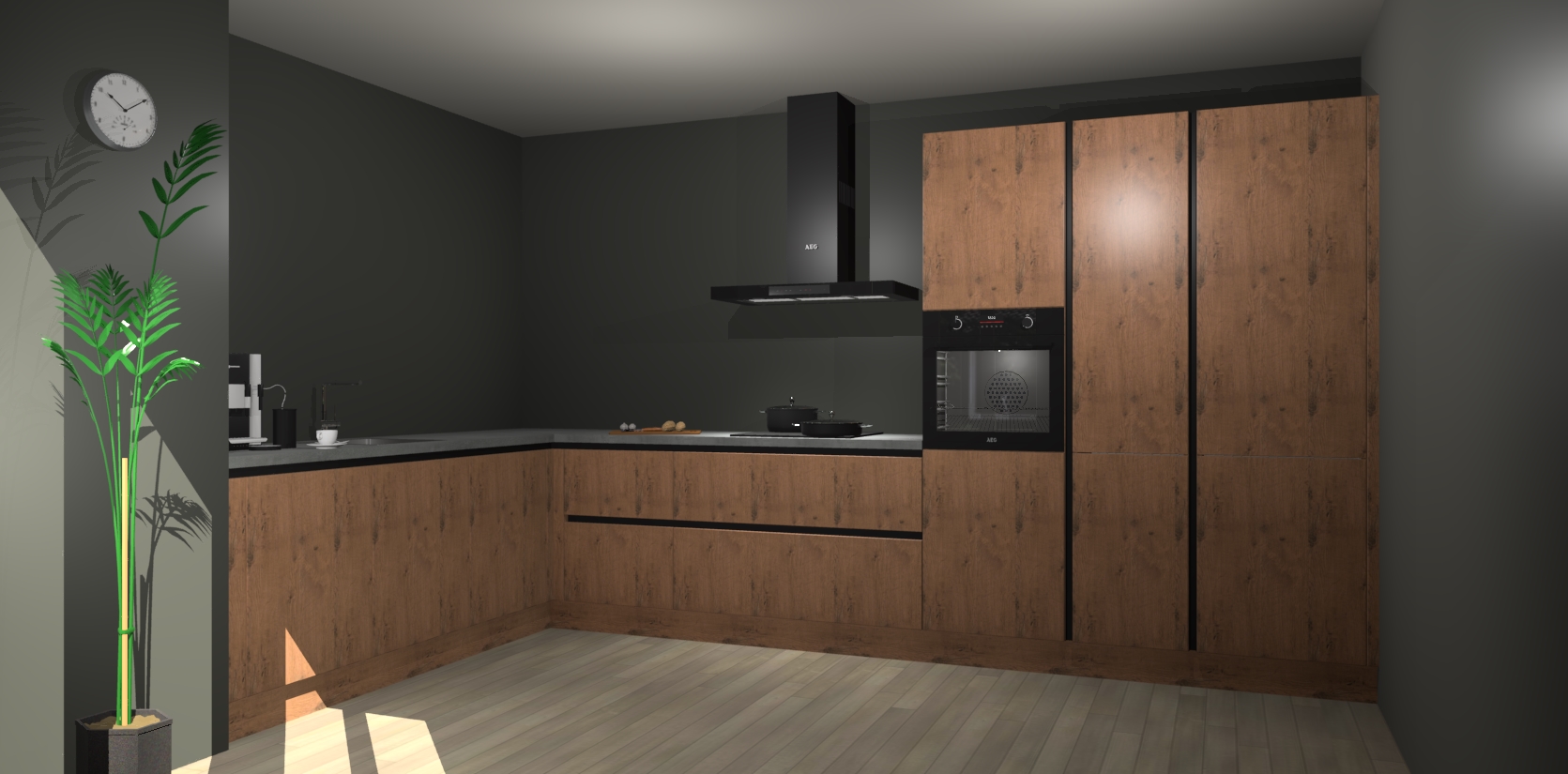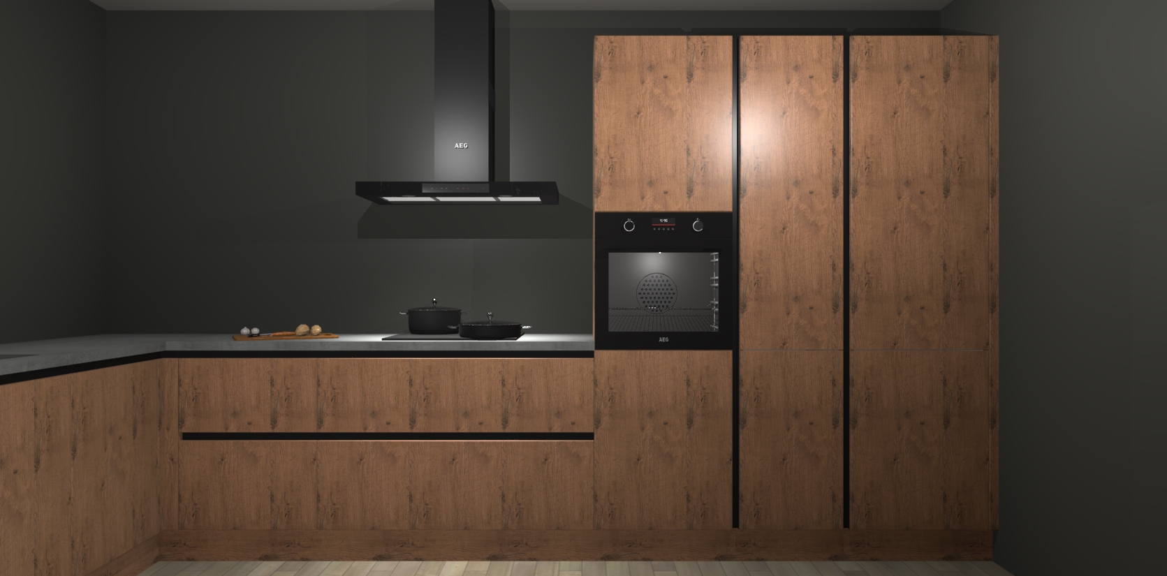 Welkom bij de astoria eiken greeploze keuken Nuuk. Deze prachtige keuken zal de komende jaren het middelpunt van de belangstelling in uw huis zijn. Uitgerust met vijf inbouwapparaten komt u nooit kookgereedschap tekort.