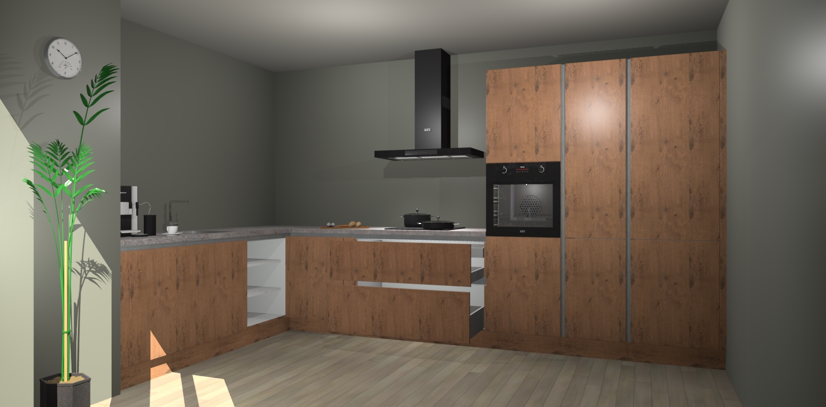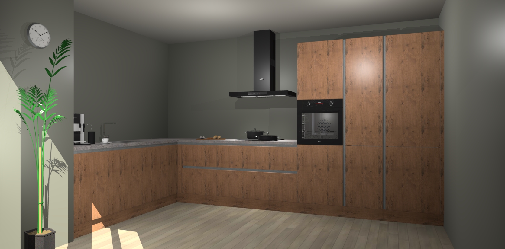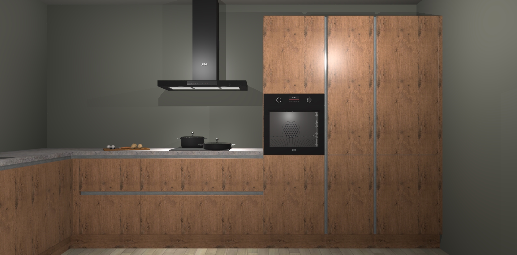 Welkom bij de astoria eiken greeploze keuken Nuuk. Deze prachtige keuken zal de komende jaren het middelpunt van de belangstelling in uw huis zijn. Uitgerust met vijf inbouwapparaten komt u nooit kookgereedschap tekort.