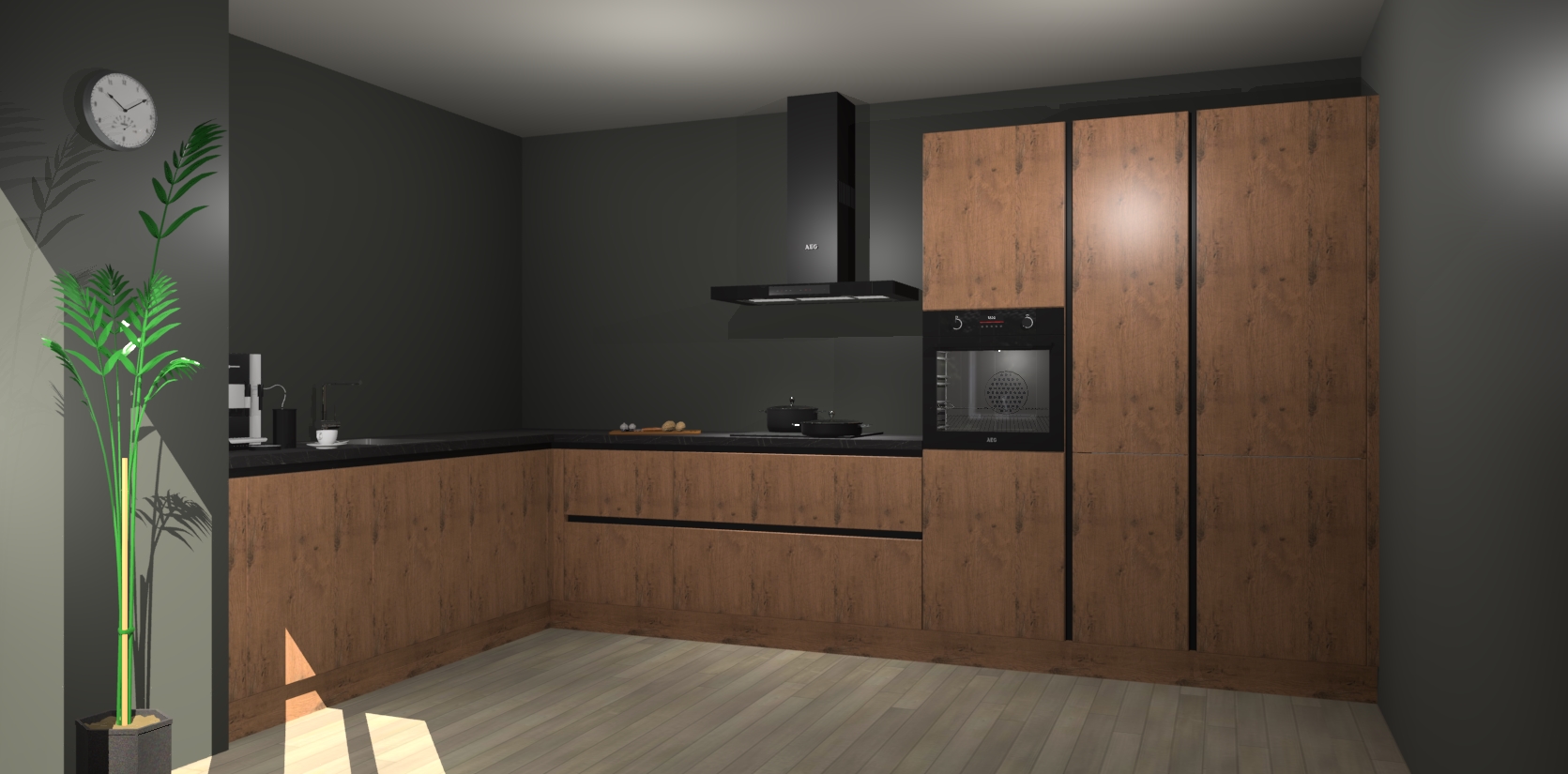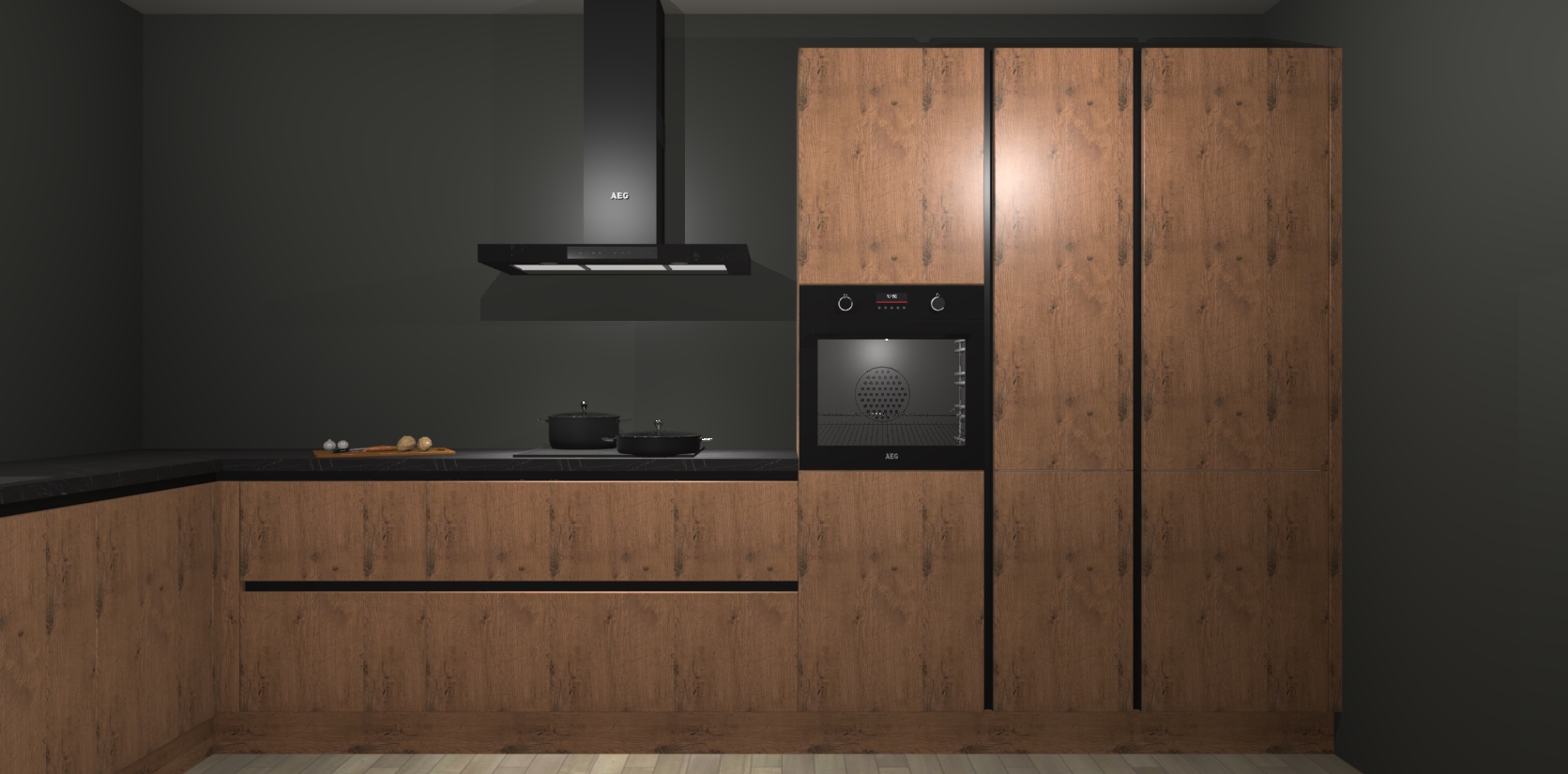 Welkom bij de astoria eiken greeploze keuken Nuuk. Deze prachtige keuken zal de komende jaren het middelpunt van de belangstelling in uw huis zijn. Uitgerust met vijf inbouwapparaten komt u nooit kookgereedschap tekort.