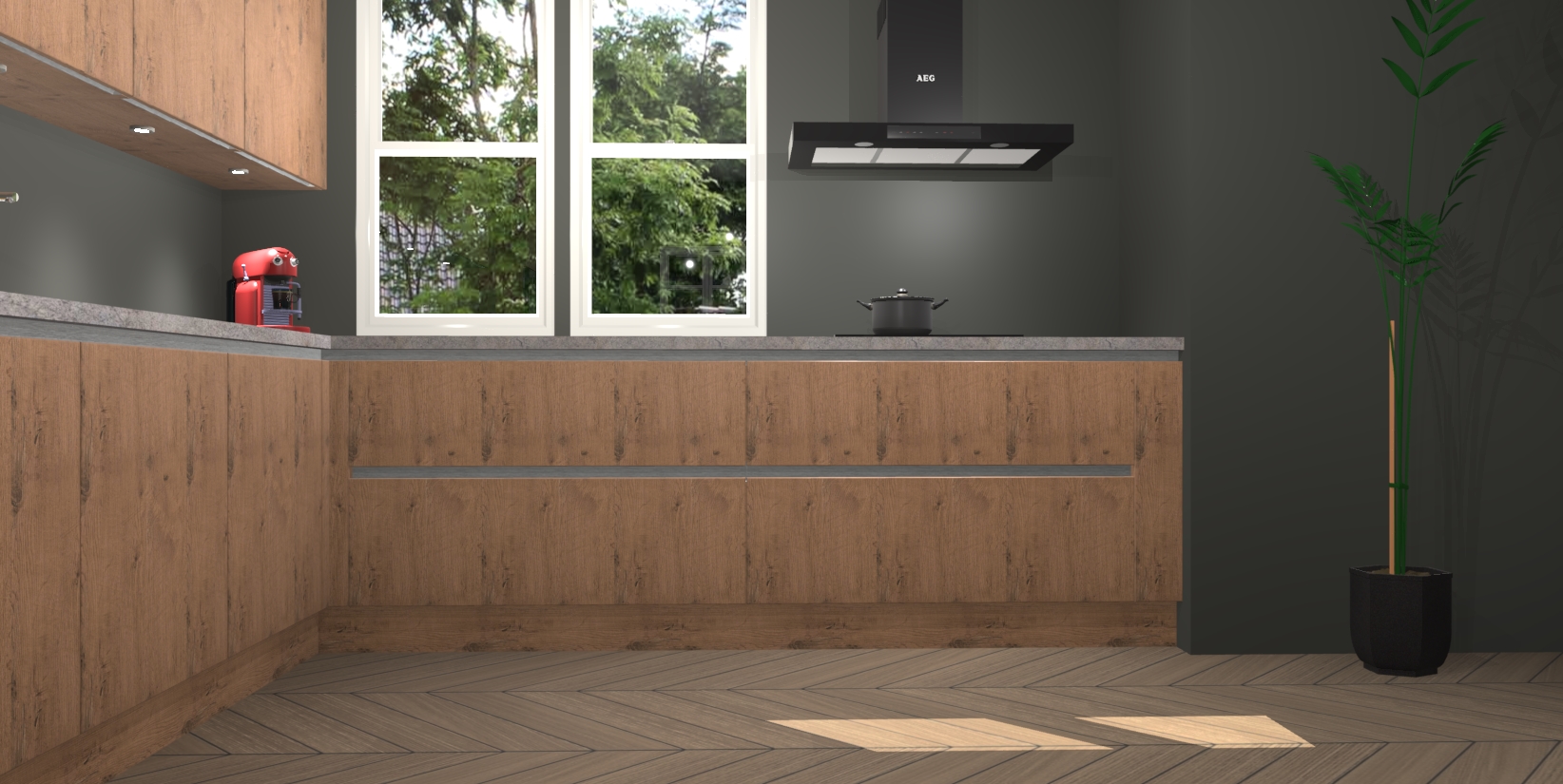 Inclusief plinten, stelpoten en werkblad