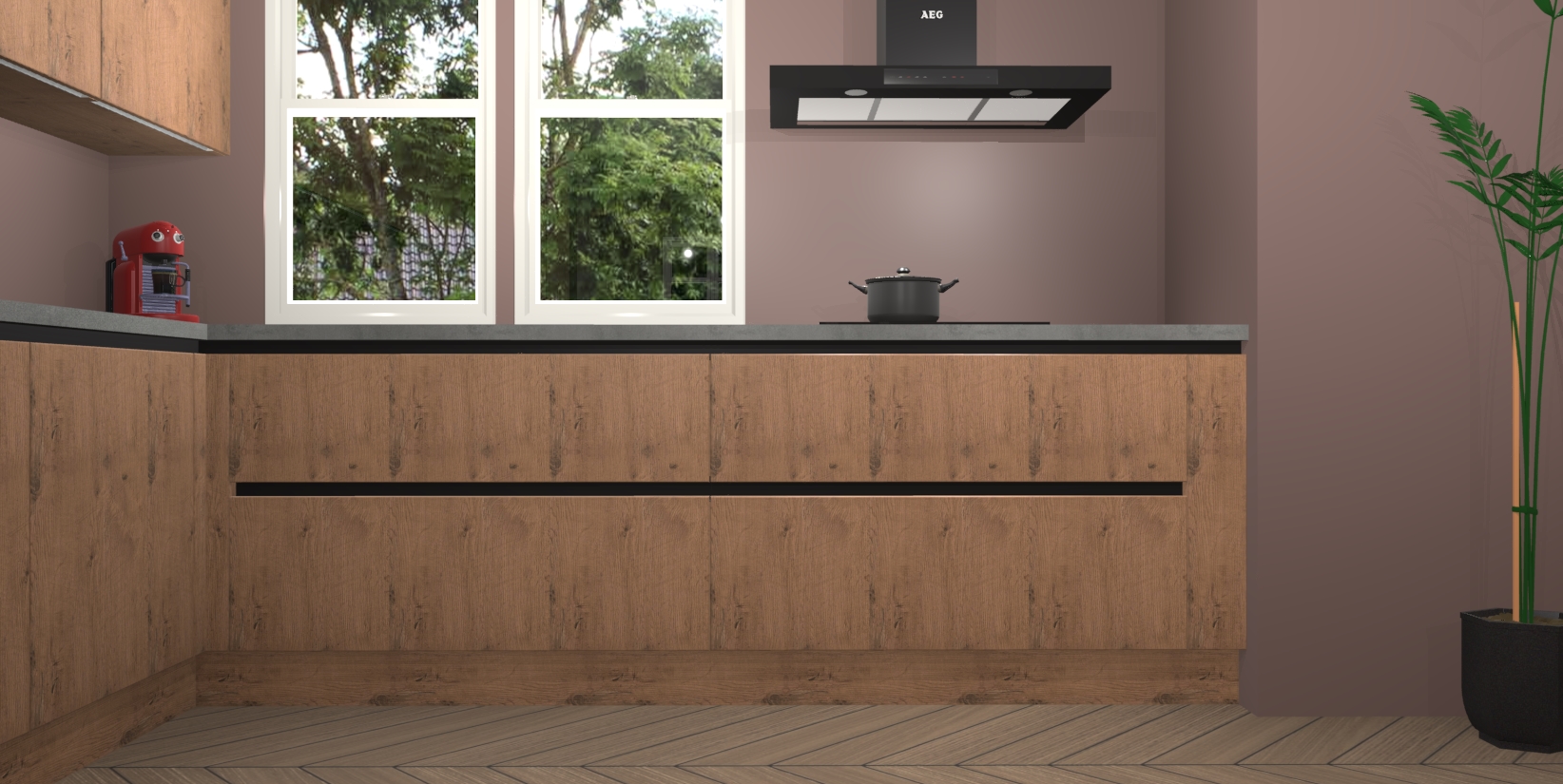 Inclusief plinten, stelpoten en werkblad