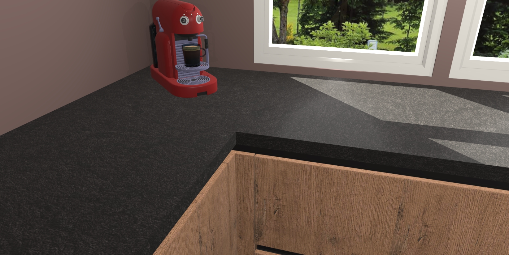- Bij een hoekwerkblad zijn de hoeken in gevreesd en op maat gemaakt