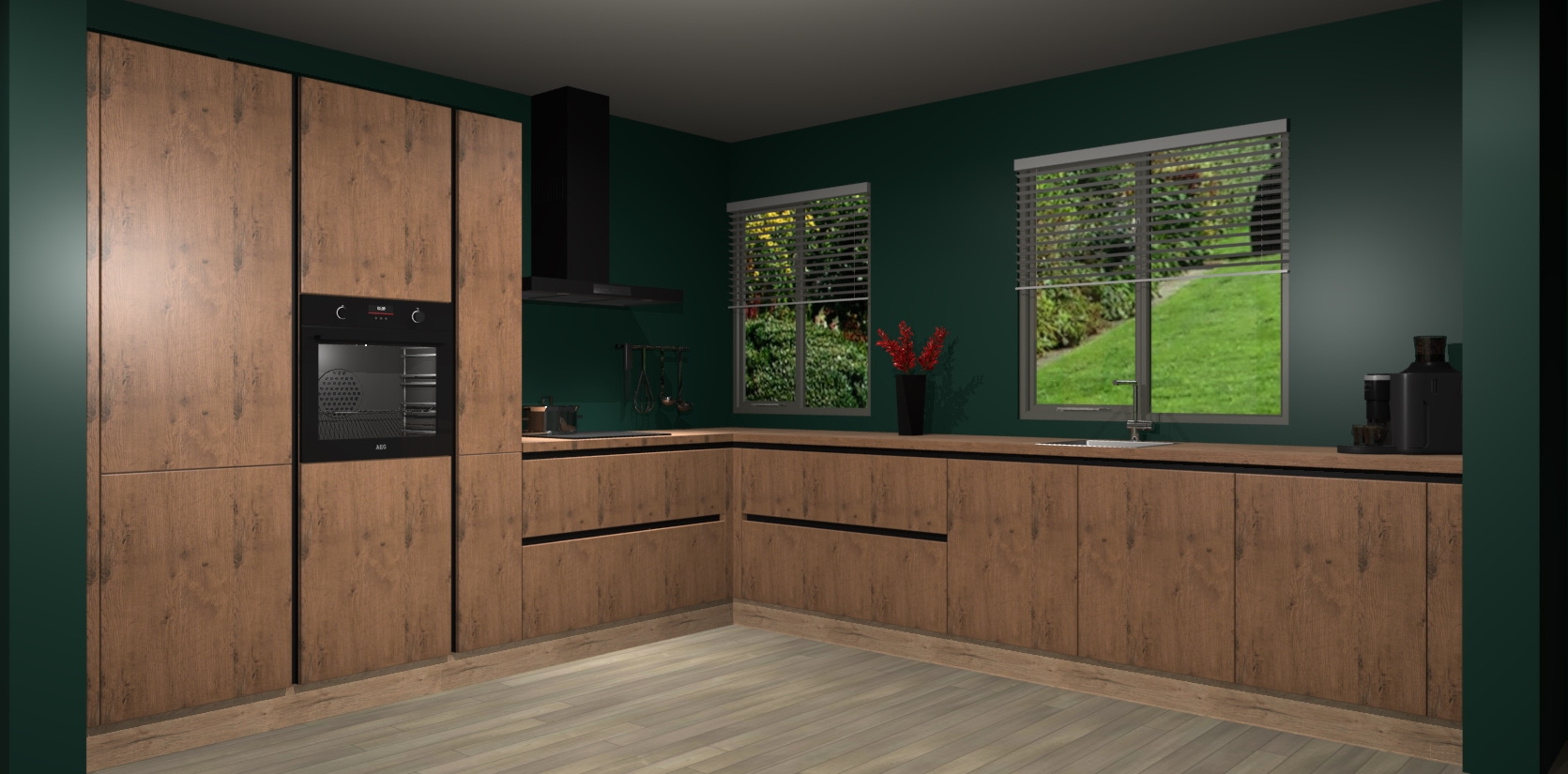Welkom bij de Astoria Eiken keuken Palermo. Deze prachtige keuken zal de komende jaren het middelpunt van de belangstelling in uw huis zijn. Uitgerust met vijf inbouwapparaten komt u nooit kookgereedschap tekort. Bovendien geeft de warme houtlook elke ruimte een uitnodigende en tijdloze uitstraling.