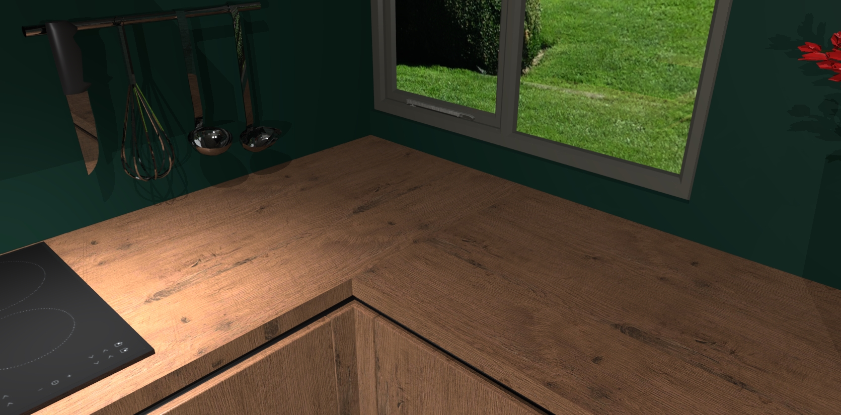 • Bij een hoekwerkblad zijn de hoeken in gevreesd en op maat gemaakt