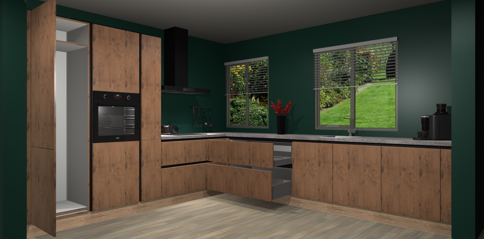 Welkom bij de Astoria Eiken keuken Palermo. Deze prachtige keuken zal de komende jaren het middelpunt van de belangstelling in uw huis zijn. Uitgerust met vijf inbouwapparaten komt u nooit kookgereedschap tekort. Bovendien geeft de warme houtlook elke ruimte een uitnodigende en tijdloze uitstraling.