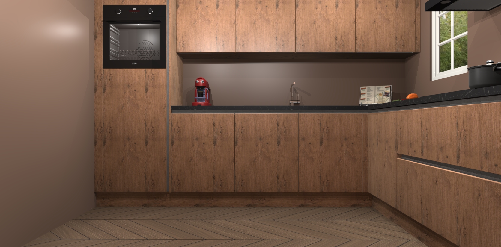 Met een modern, tijdloos design en ruime opslagruimte, zult u zich in no-time thuis voelen in uw nieuwe keuken. Uw leven wordt eenvoudiger met de soft-close deuren die voor het ultieme stille comfort zorgen - geen geluid dat u stoort terwijl u kookt. Ook is de keuken voorzien van 5 ingebouwde apparaten: een oven, inductie kookplaat, afzuigkap, vaatwasser en koelkast. Deze kunnen gemakkelijk na bestelling worden bijgewerkt naar AEG - waardoor uw luxe ervaring compleet is.