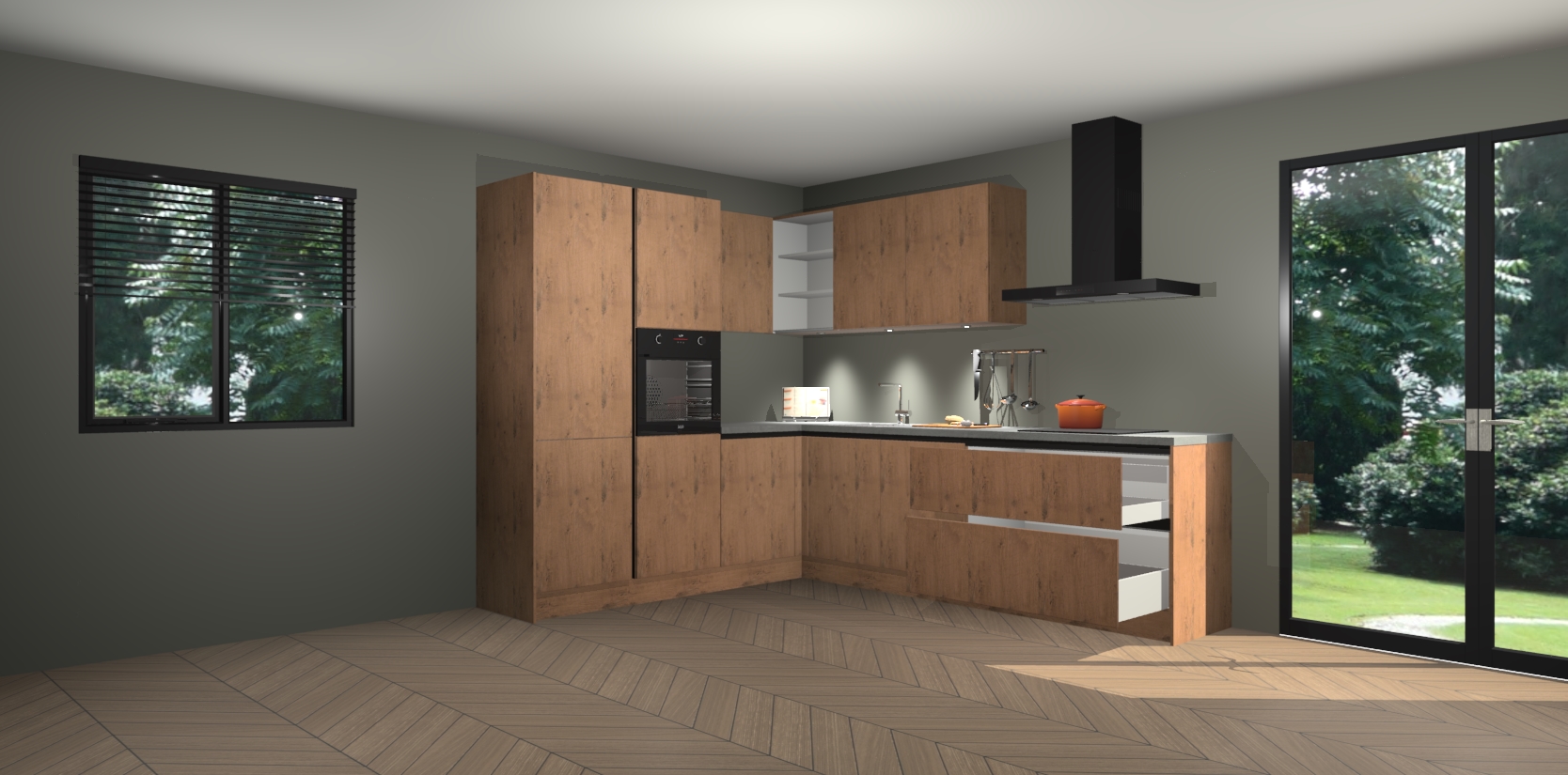 Maak kennis met de astoria eiken greeploze keuken Parla - de perfecte aanvulling voor uw moderne keuken! Ervaar tijdloos design, elegantie en een chique uitstraling met onze zwarte handgrepen, soft-close deuren en veel opbergruimte. Dit alles wordt aangeboden tegen een vaste lage prijs voor ongeëvenaarde Duitse keukenkwaliteit!