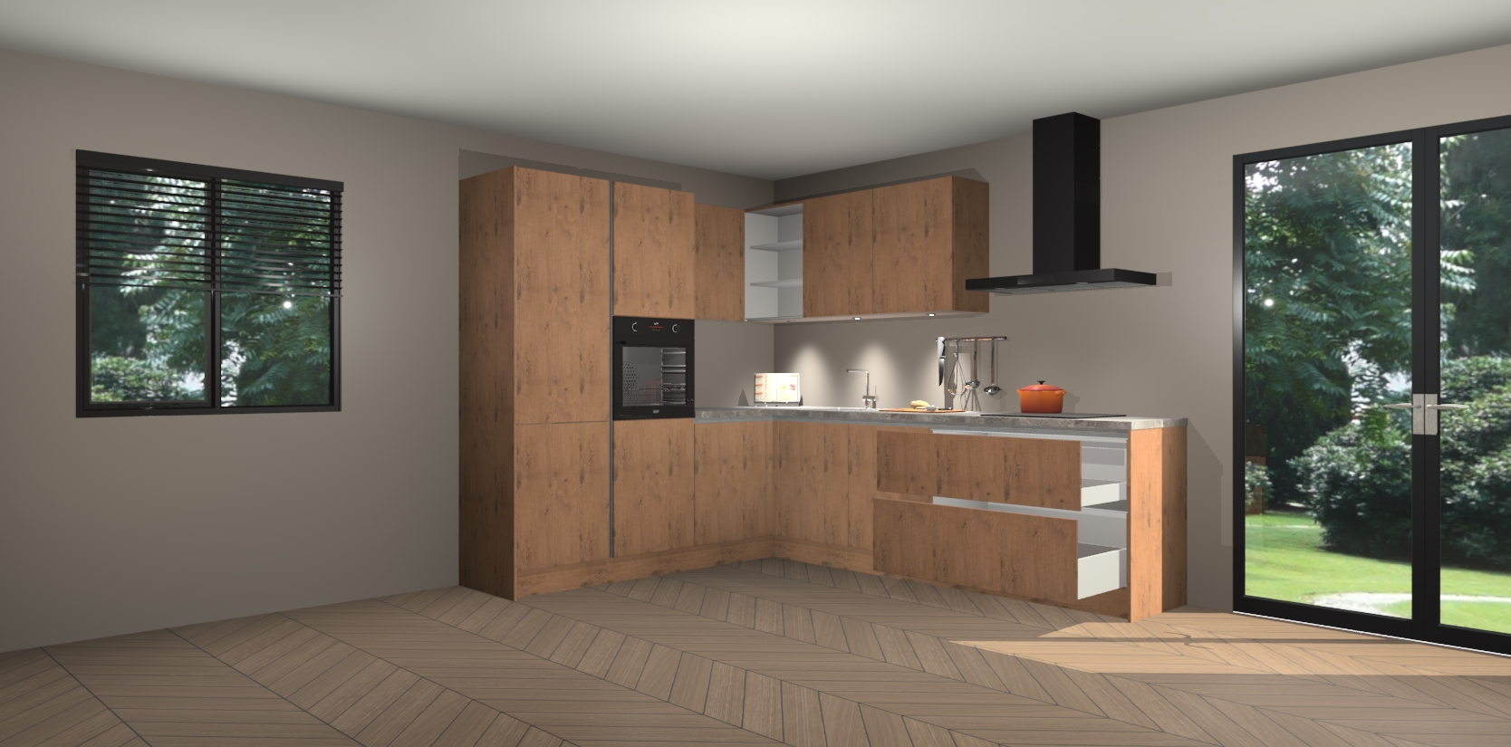 Maak kennis met de astoria eiken greeploze keuken Parla - de perfecte aanvulling voor uw moderne keuken! Ervaar tijdloos design, elegantie en een chique uitstraling met onze zwarte handgrepen, soft-close deuren en veel opbergruimte. Dit alles wordt aangeboden tegen een vaste lage prijs voor ongeëvenaarde Duitse keukenkwaliteit!