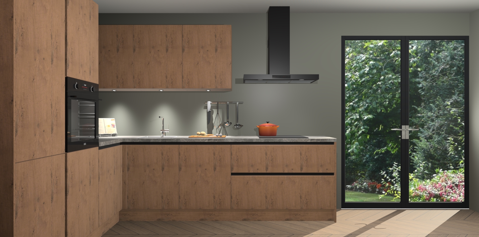 Maak kennis met de astoria eiken greeploze keuken Parla - de perfecte aanvulling voor uw moderne keuken! Ervaar tijdloos design, elegantie en een chique uitstraling met onze zwarte handgrepen, soft-close deuren en veel opbergruimte. Dit alles wordt aangeboden tegen een vaste lage prijs voor ongeëvenaarde Duitse keukenkwaliteit!