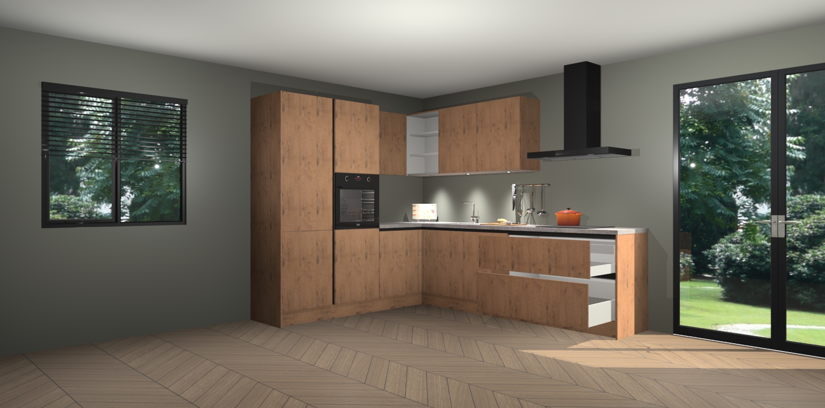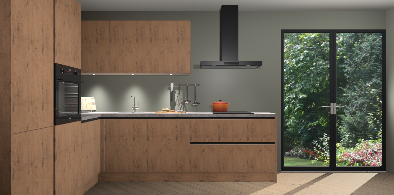 Maak kennis met de astoria eiken greeploze keuken Parla - de perfecte aanvulling voor uw moderne keuken! Ervaar tijdloos design, elegantie en een chique uitstraling met onze zwarte handgrepen, soft-close deuren en veel opbergruimte. Dit alles wordt aangeboden tegen een vaste lage prijs voor ongeëvenaarde Duitse keukenkwaliteit!