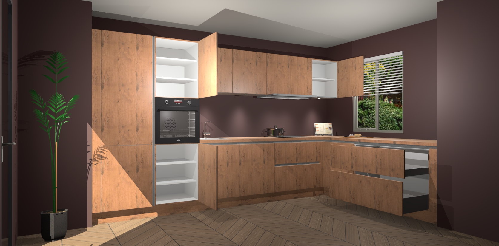 Verwelkom de natuurlijke warmte van de Astoria Eiken greeploze keuken Petten in uw huis. Deze prachtige hoekkeuken met zijn moderne design en warme houten look geeft u meer dan genoeg opbergruimte om uw comfortabel te voelen in uw keuken. Geniet van soft-close deuren die al uw gasten het gevoel zullen geven dat ze zich in een luxueuze ruimte bevinden.