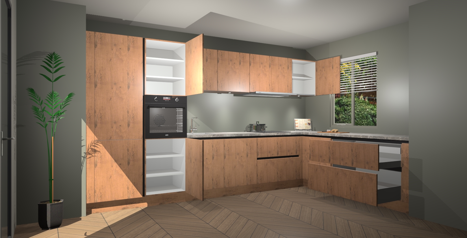 Verwelkom de natuurlijke warmte van de Astoria Eiken greeploze keuken Petten in uw huis. Deze prachtige hoekkeuken met zijn moderne design en warme houten look geeft u meer dan genoeg opbergruimte om uw comfortabel te voelen in uw keuken. Geniet van soft-close deuren die al uw gasten het gevoel zullen geven dat ze zich in een luxueuze ruimte bevinden.