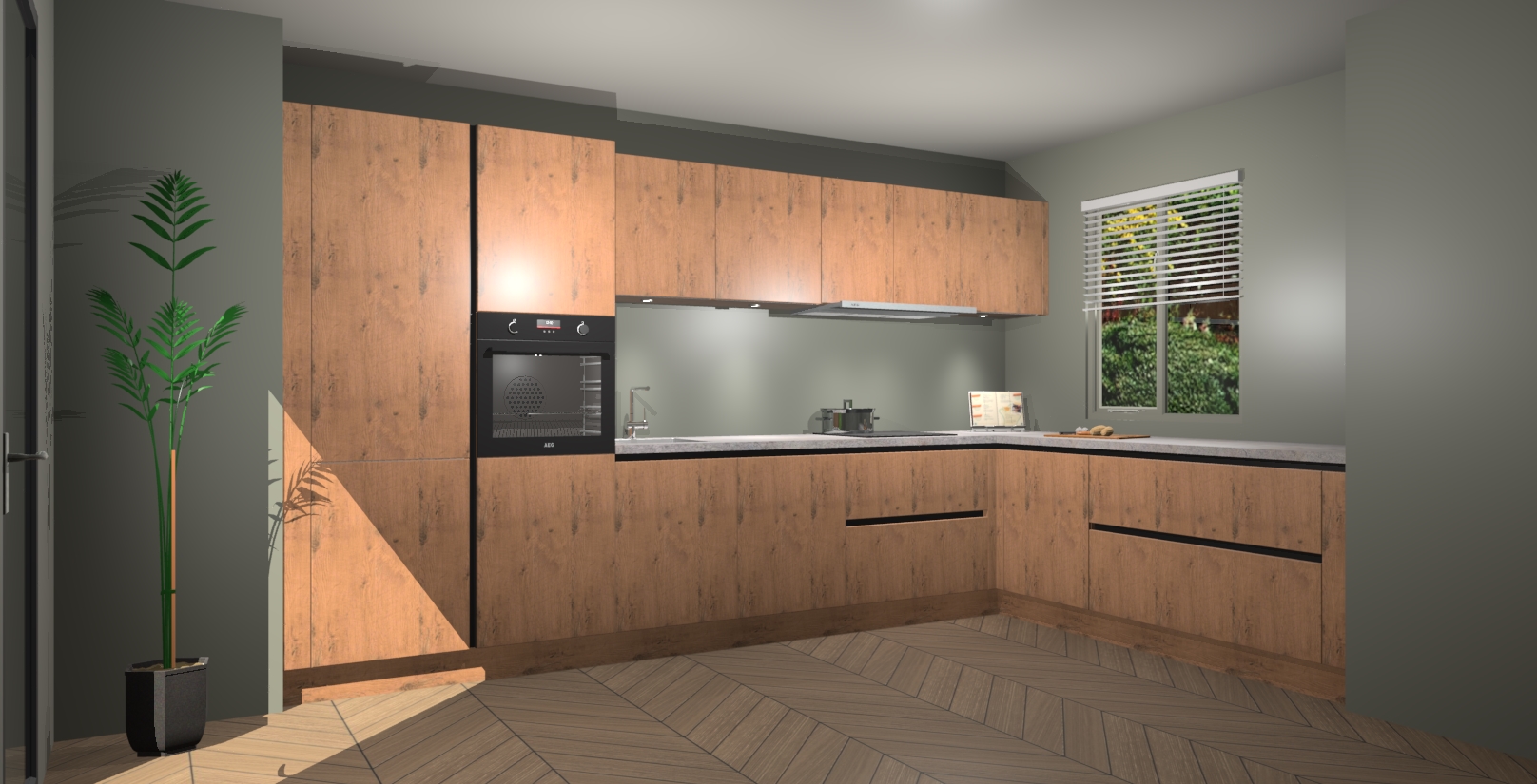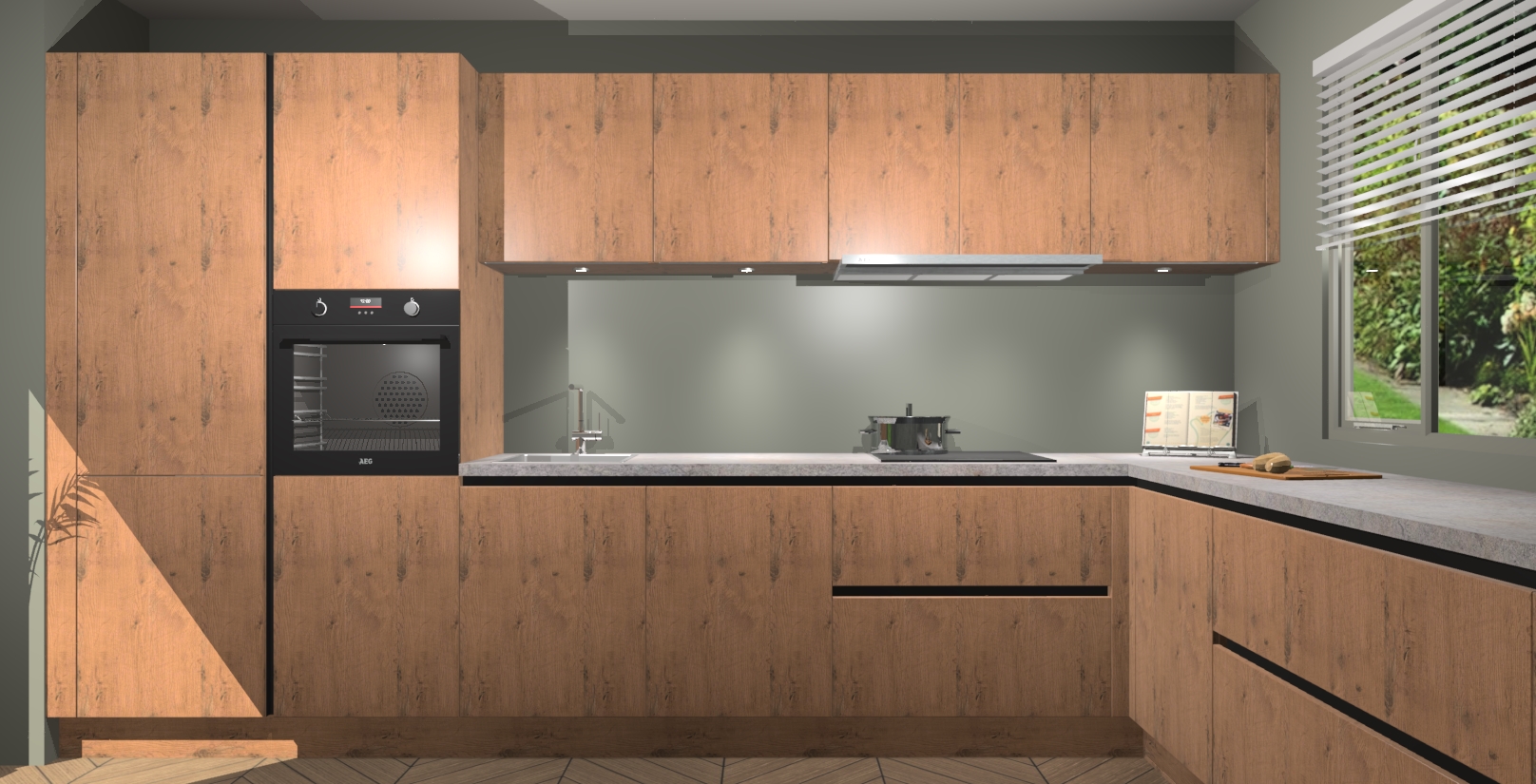 Verwelkom de natuurlijke warmte van de Astoria Eiken greeploze keuken Petten in uw huis. Deze prachtige hoekkeuken met zijn moderne design en warme houten look geeft u meer dan genoeg opbergruimte om uw comfortabel te voelen in uw keuken. Geniet van soft-close deuren die al uw gasten het gevoel zullen geven dat ze zich in een luxueuze ruimte bevinden.