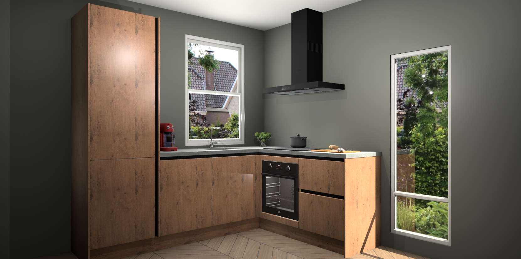 De Astoria Eiken greeploze keuken Phuket heeft alles wat u maar kunt wensen. Niet alleen zijn er softclose deuren, maar ook 5 ingebouwde apparaten: een oven, inductiekookplaat, afzuigkap, vaatwasser en koelkast - waarbij u later gemakkelijk naar het AEG merk, van inductiekookplaat naar kookplaat met geïntegreerde afzuiging of van oven naar combimagnetron kunt upgraden. Dat alles tegen een vast laag tarief! Bovendien geeft de Astoria Eiken greeploze keuken Phuket supersnelle levering van 7 weken. Echt iets voor u als u er niet op wilt wachten om het resultaat te zien in eigen keuken!