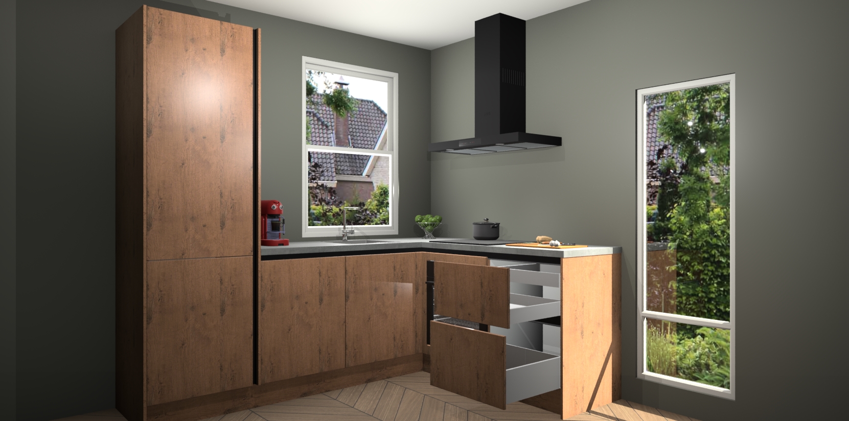 De prachtige Astoria Eiken greeploze keuken Phuket is de perfecte keuze als u op zoek bent naar een moderne hoekkeuken met alle luxe en comfort die u kunt verwachten! De uitstraling in het houtlook-design draagt bij aan de warme sfeer die u nu al voelt wanneer u er naar kijkt. Heeft u genoeg van ouderwetse keukens? Probeer dan direct deze moderne, mooie hoekkeukens en laat iedereen verbluft achter!