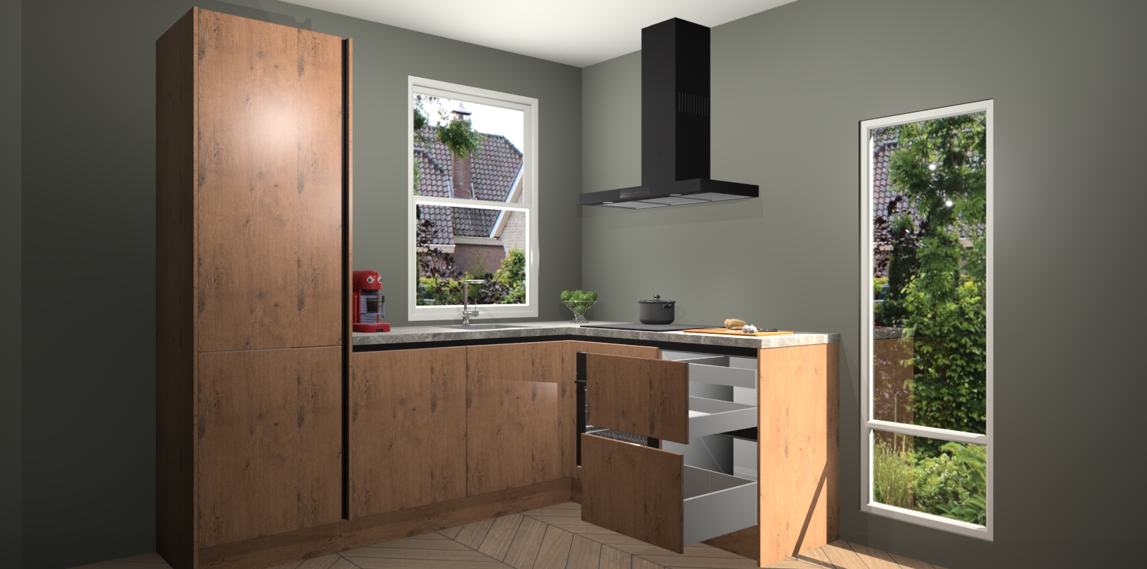 De prachtige Astoria Eiken greeploze keuken Phuket is de perfecte keuze als u op zoek bent naar een moderne hoekkeuken met alle luxe en comfort die u kunt verwachten! De uitstraling in het houtlook-design draagt bij aan de warme sfeer die u nu al voelt wanneer u er naar kijkt. Heeft u genoeg van ouderwetse keukens? Probeer dan direct deze moderne, mooie hoekkeukens en laat iedereen verbluft achter!