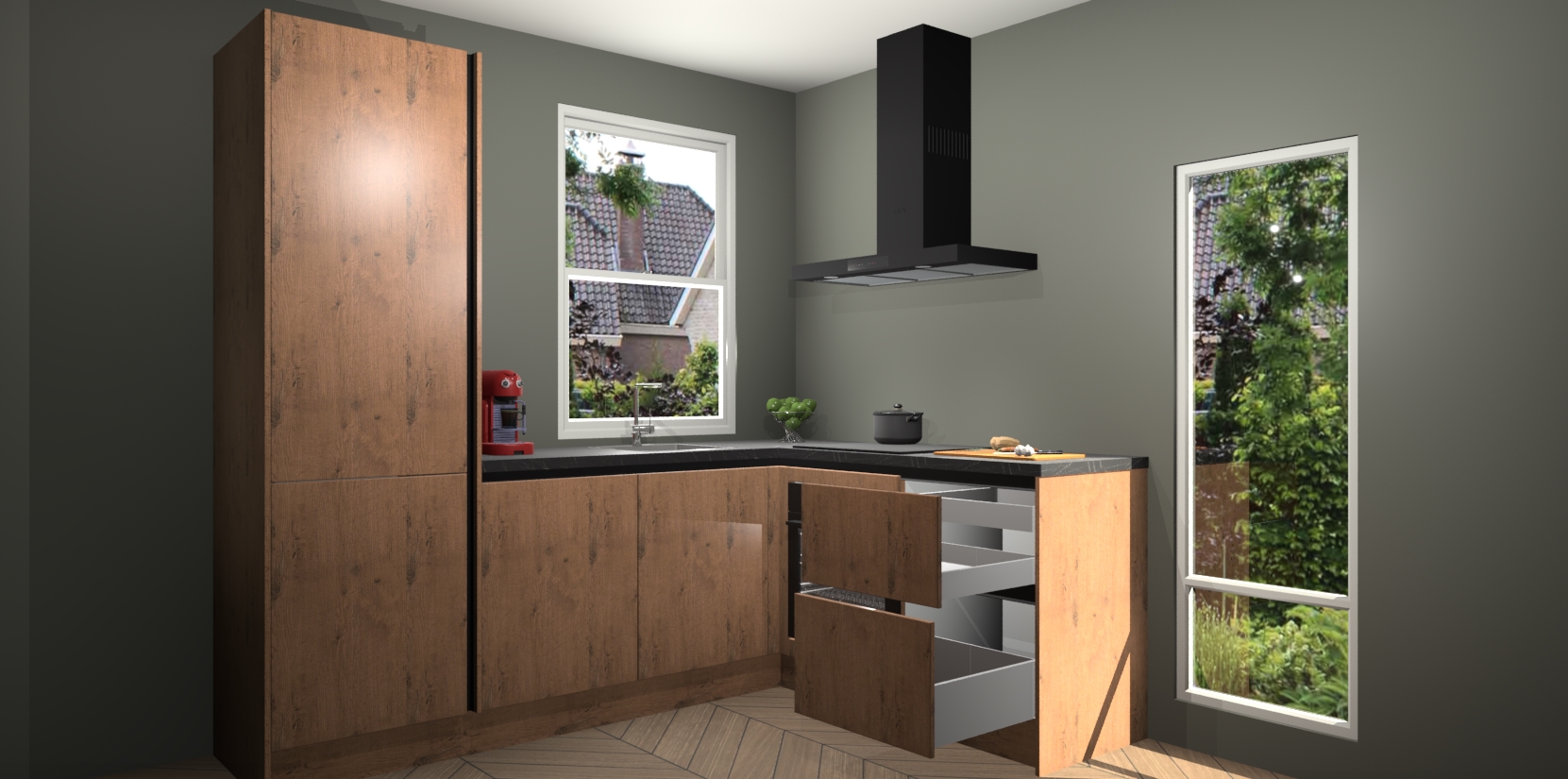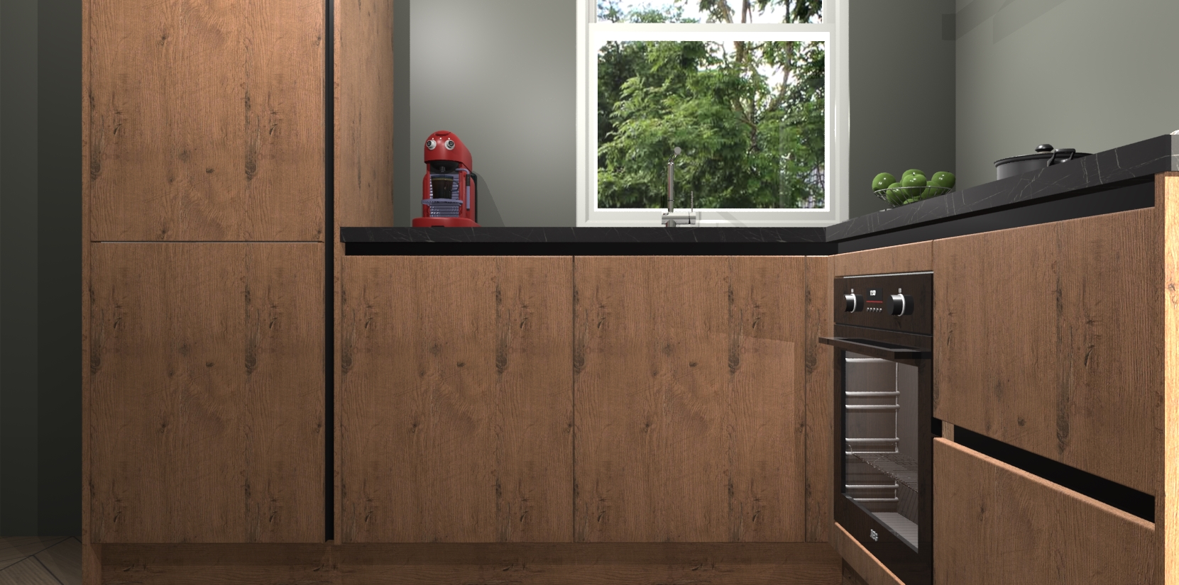 De prachtige Astoria Eiken greeploze keuken Phuket is de perfecte keuze als u op zoek bent naar een moderne hoekkeuken met alle luxe en comfort die u kunt verwachten! De uitstraling in het houtlook-design draagt bij aan de warme sfeer die u nu al voelt wanneer u er naar kijkt. Heeft u genoeg van ouderwetse keukens? Probeer dan direct deze moderne, mooie hoekkeukens en laat iedereen verbluft achter!