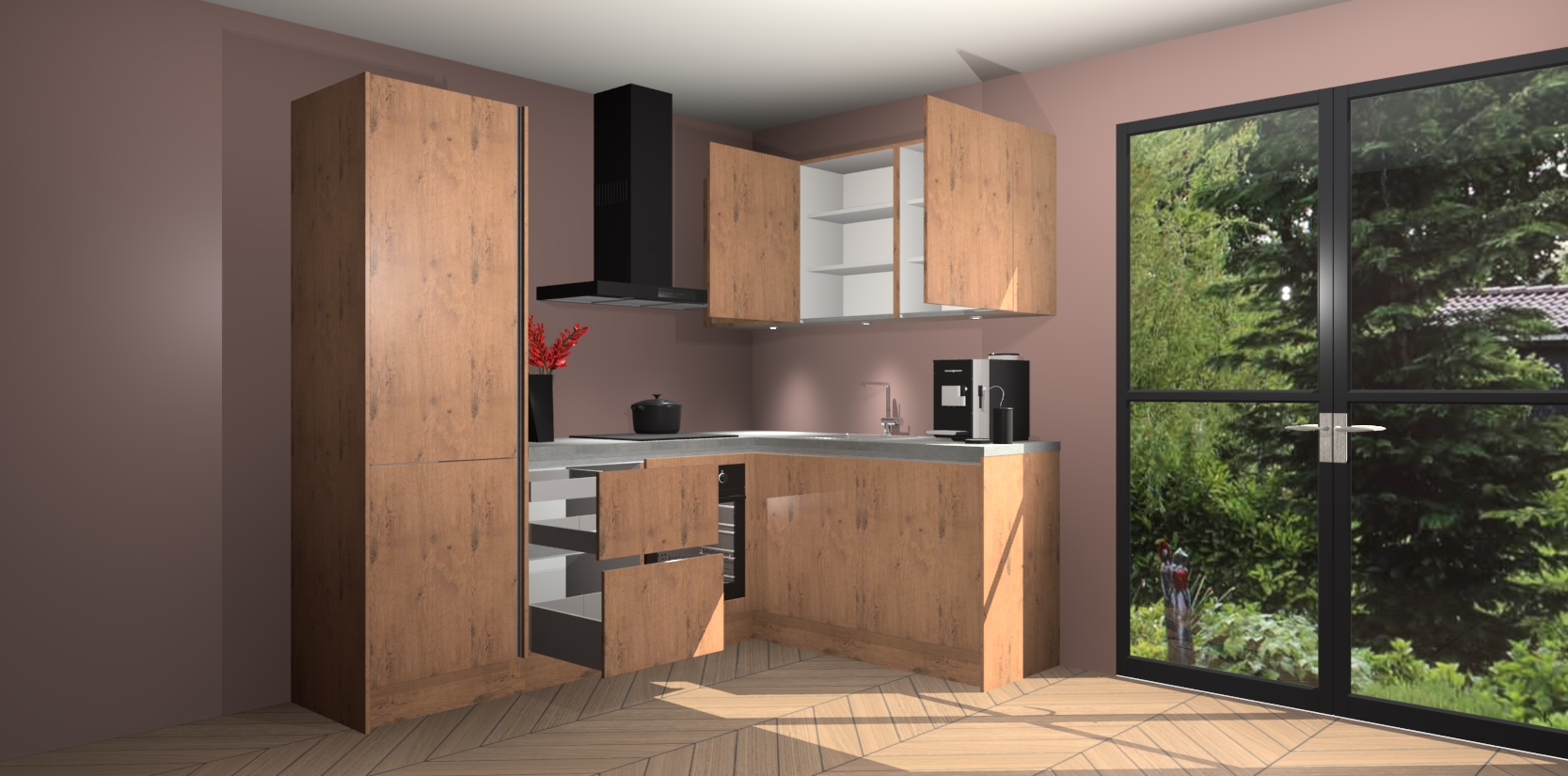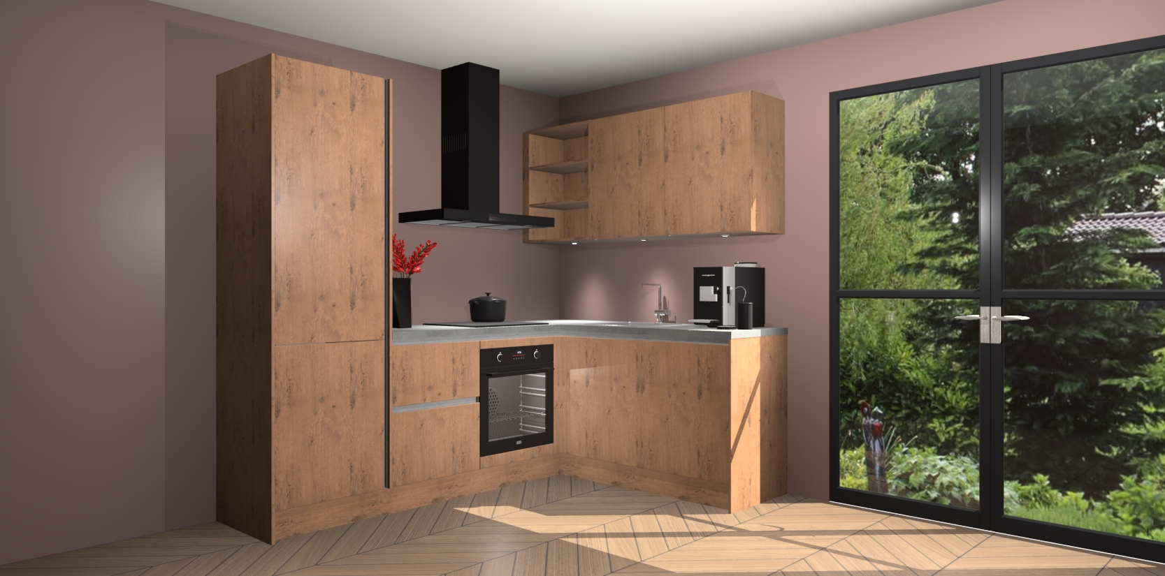 Wauw, dit is de Astoria Eiken greeploze keuken Pilsen! U kunt gerust zeggen dat u elegantie combineert met functionaliteit met deze keuken. Met een modern en chique ontwerp is de keuken precies wat u nodig heeft om uw ruimte te verfraaien. De binnenzijde van de kasten is in dezelfde donkere kleur als de buitenzijde voor een uniforme look, compleet met softclose-kasten die stil sluiten.