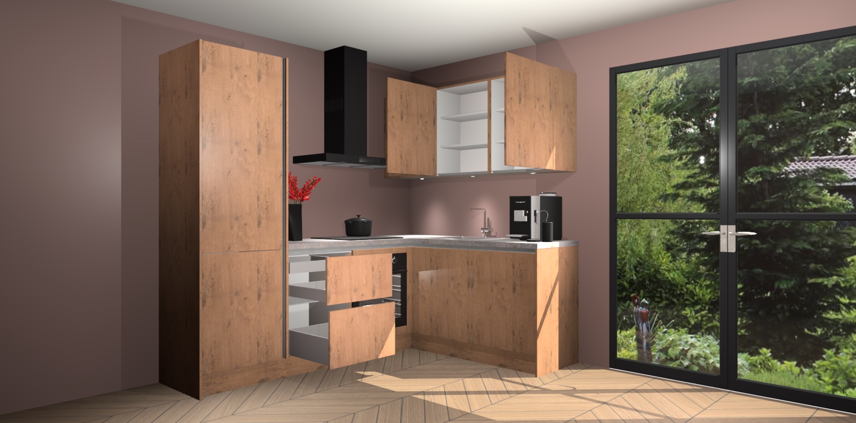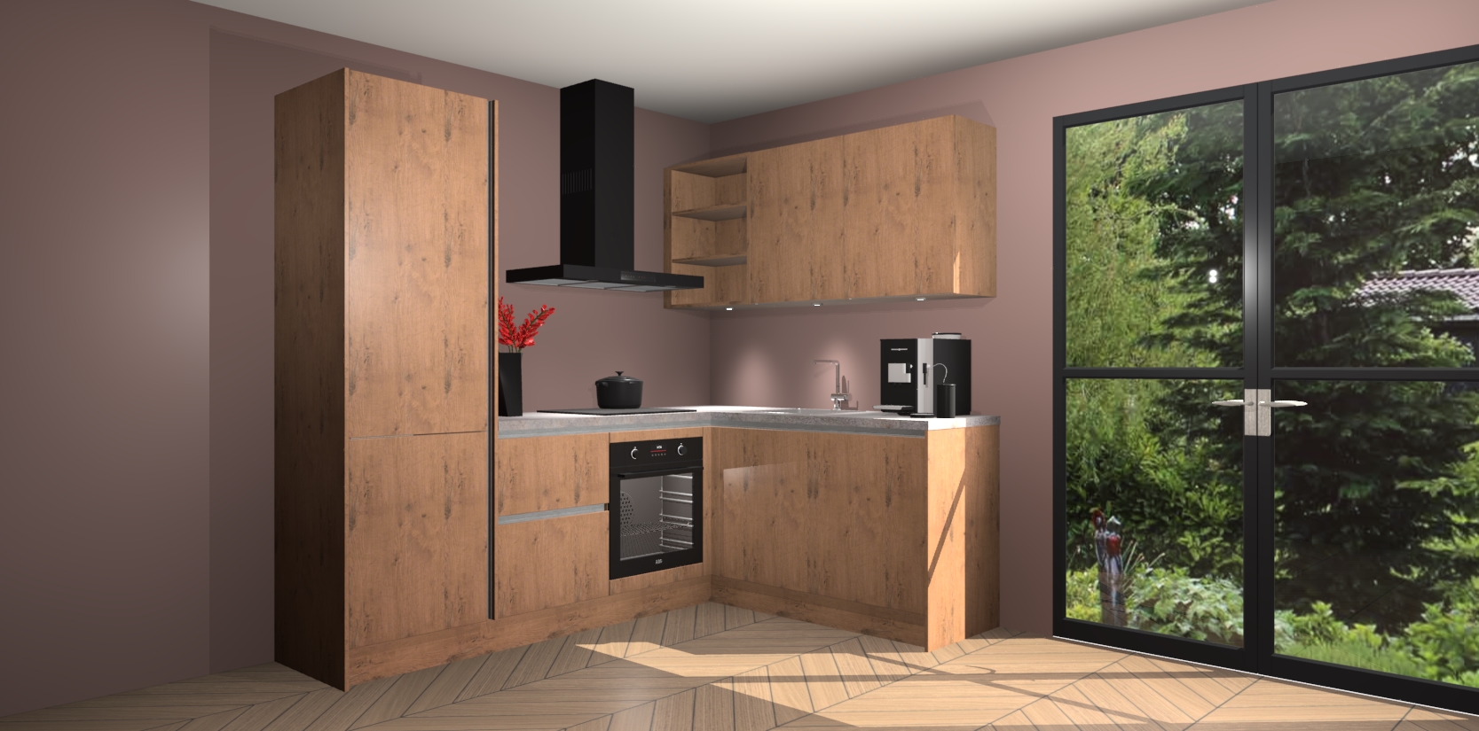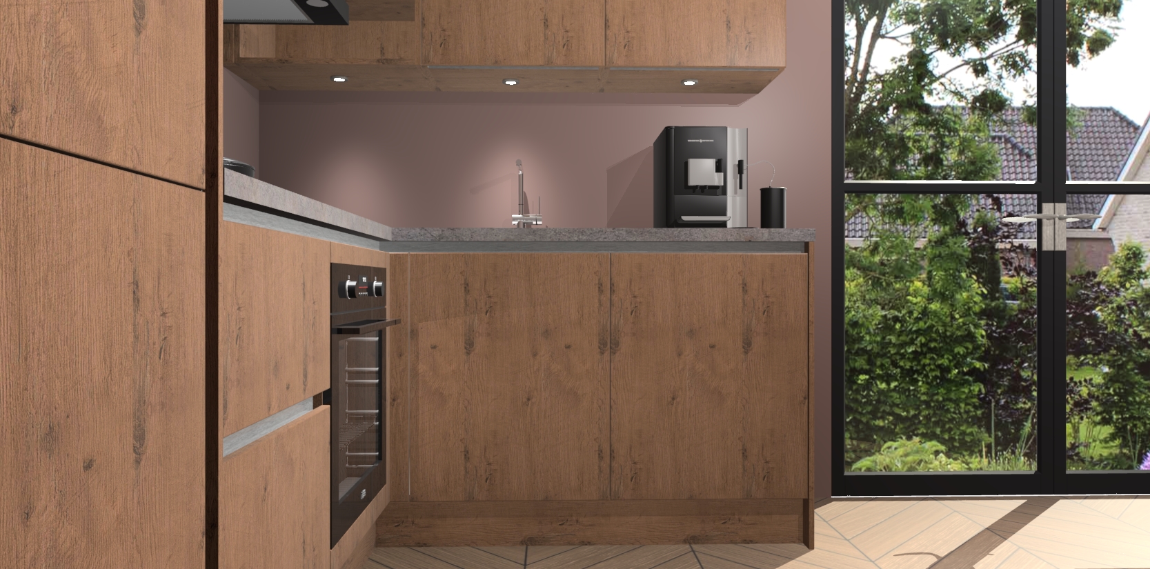 Wauw, dit is de Astoria Eiken greeploze keuken Pilsen! U kunt gerust zeggen dat u elegantie combineert met functionaliteit met deze keuken. Met een modern en chique ontwerp is de keuken precies wat u nodig heeft om uw ruimte te verfraaien. De binnenzijde van de kasten is in dezelfde donkere kleur als de buitenzijde voor een uniforme look, compleet met softclose-kasten die stil sluiten.