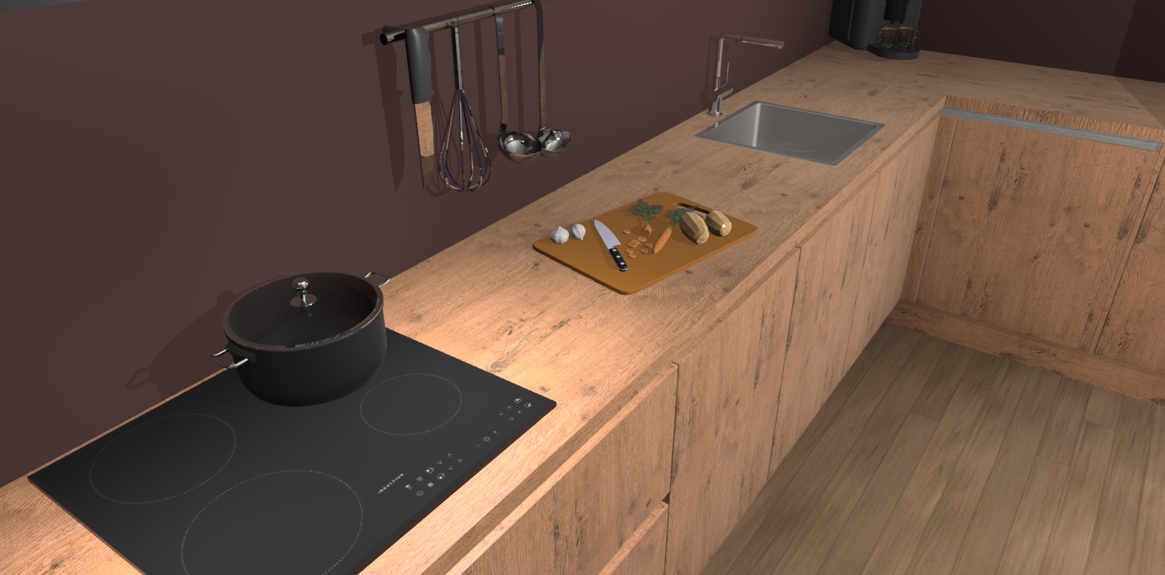- Uitsparing van kookplaat, spoelbak en kraan dient u zelf te verzorgen.