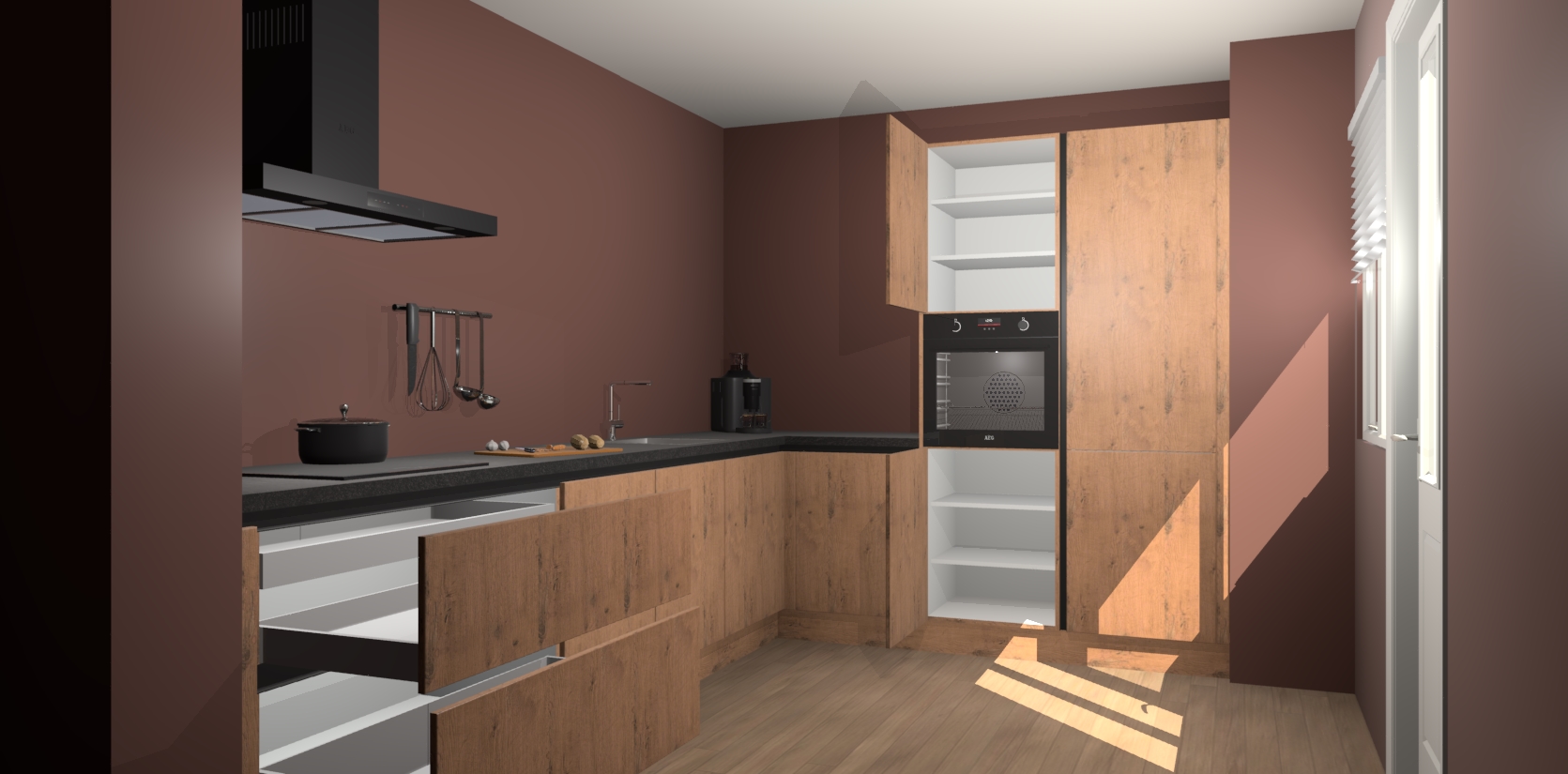Welkom bij de Astoria Eiken greeploze keuken Portland. Deze prachtige keuken zal de komende jaren het middelpunt van de belangstelling in uw huis zijn. Uitgerust met vijf inbouwapparaten komt u nooit kookgereedschap tekort. Bovendien geeft de warme houtlook elke ruimte een uitnodigende en tijdloze uitstraling.
