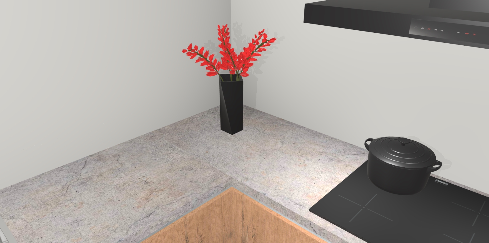 - Bij een hoekwerkblad zijn de hoeken in gevreesd en op maat gemaakt