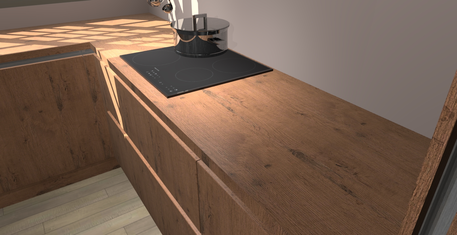 - Bij een hoekwerkblad zijn de hoeken in gevreesd en op maat gemaakt