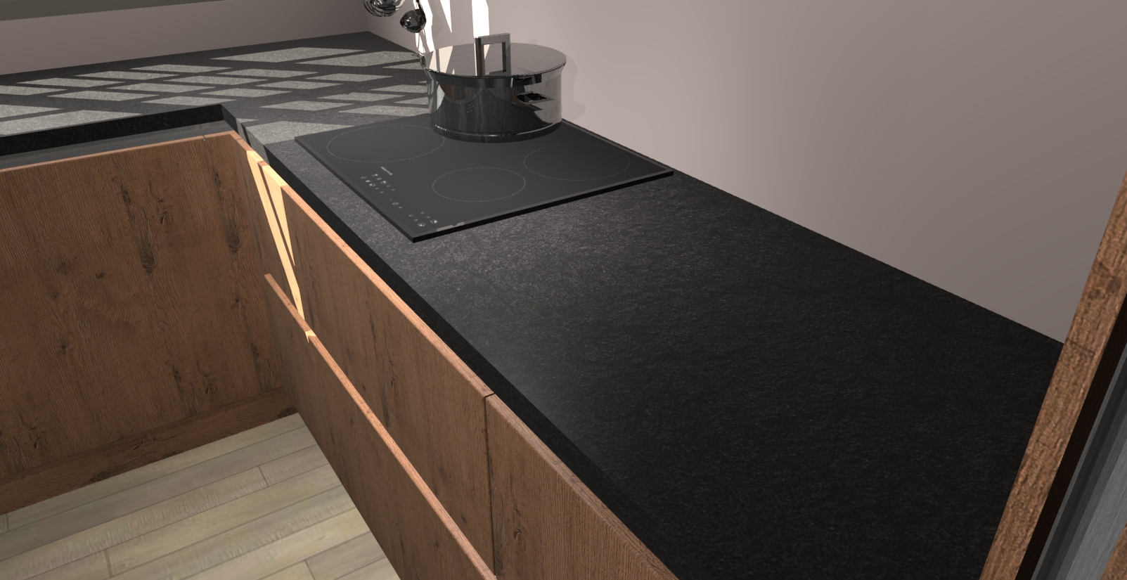 - Bij een hoekwerkblad zijn de hoeken in gevreesd en op maat gemaakt