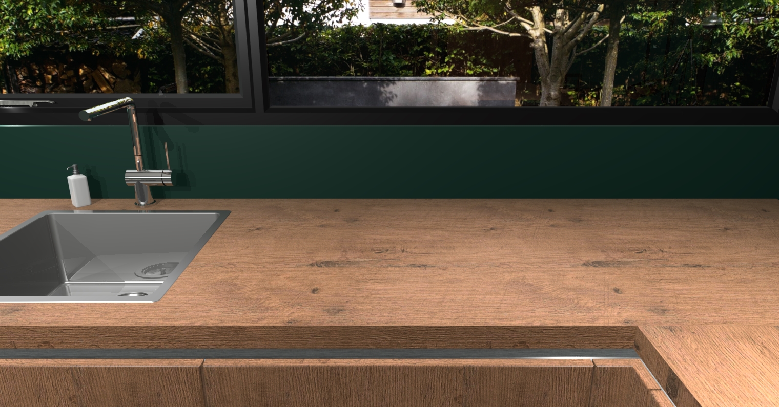 - Bij een hoekwerkblad zijn de hoeken in gevreesd en op maat gemaakt