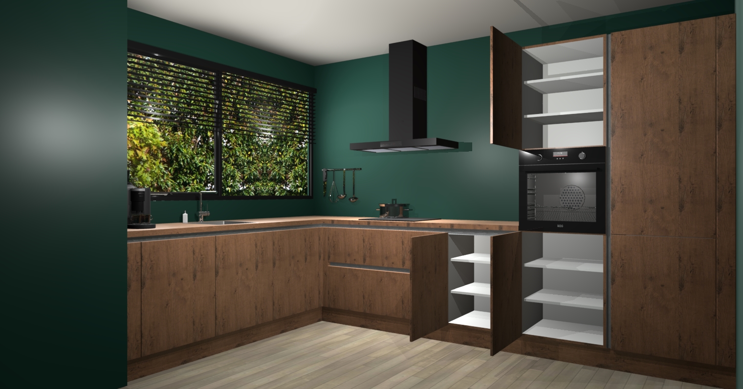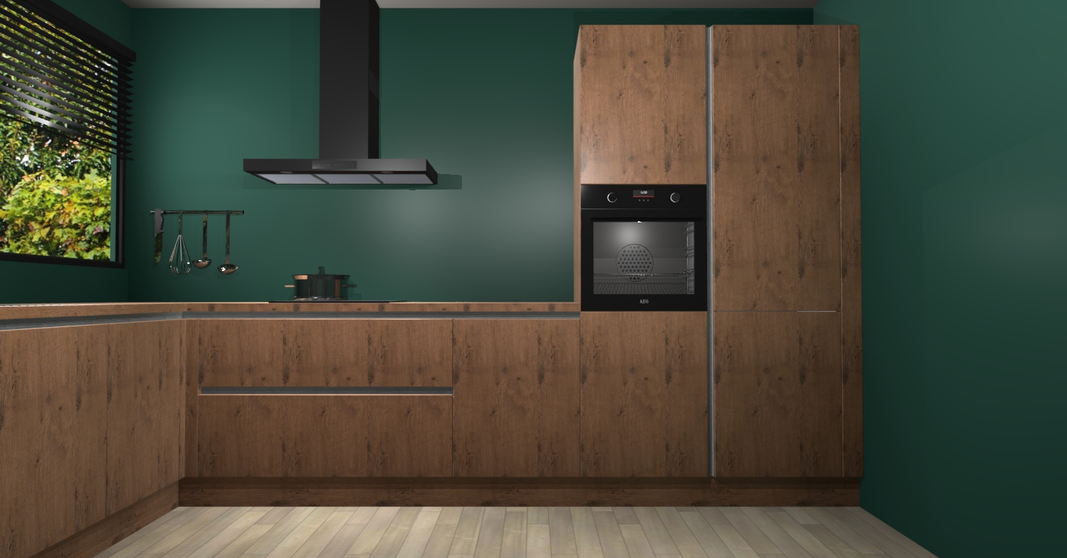 Met een modern, tijdloos design en ruime opslagruimte, zult u zich in no-time thuis voelen in uw nieuwe keuken. Uw leven wordt eenvoudiger met de soft-close deuren die voor het ultieme stille comfort zorgen - geen geluid dat u stoort terwijl u kookt. Ook is de keuken voorzien van 5 ingebouwde apparaten: een oven, inductie kookplaat, afzuigkap, vaatwasser en koelkast. Deze kunnen gemakkelijk na bestelling worden bijgewerkt naar AEG - waardoor uw luxe ervaring compleet is.
