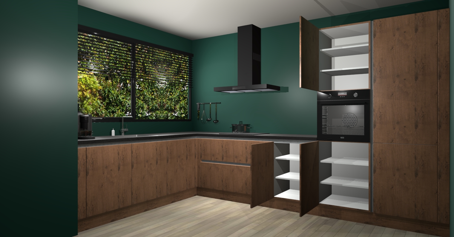 Met een modern, tijdloos design en ruime opslagruimte, zult u zich in no-time thuis voelen in uw nieuwe keuken. Uw leven wordt eenvoudiger met de soft-close deuren die voor het ultieme stille comfort zorgen - geen geluid dat u stoort terwijl u kookt. Ook is de keuken voorzien van 5 ingebouwde apparaten: een oven, inductie kookplaat, afzuigkap, vaatwasser en koelkast. Deze kunnen gemakkelijk na bestelling worden bijgewerkt naar AEG - waardoor uw luxe ervaring compleet is.