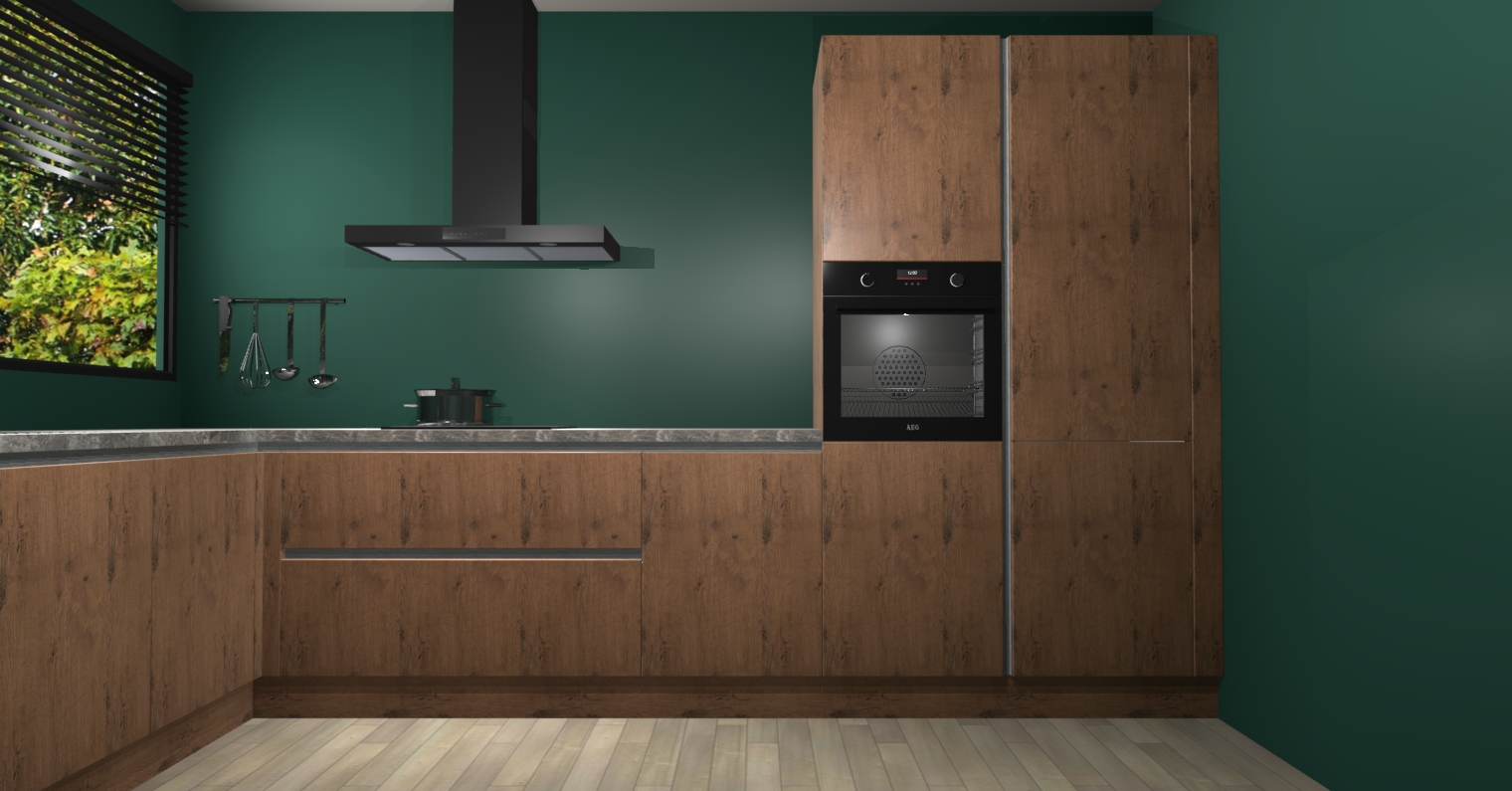 Met een modern, tijdloos design en ruime opslagruimte, zult u zich in no-time thuis voelen in uw nieuwe keuken. Uw leven wordt eenvoudiger met de soft-close deuren die voor het ultieme stille comfort zorgen - geen geluid dat u stoort terwijl u kookt. Ook is de keuken voorzien van 5 ingebouwde apparaten: een oven, inductie kookplaat, afzuigkap, vaatwasser en koelkast. Deze kunnen gemakkelijk na bestelling worden bijgewerkt naar AEG - waardoor uw luxe ervaring compleet is.