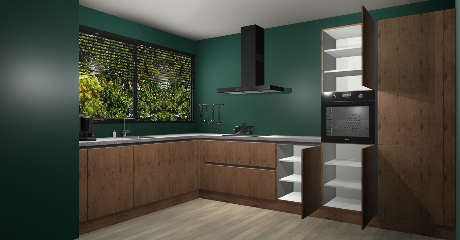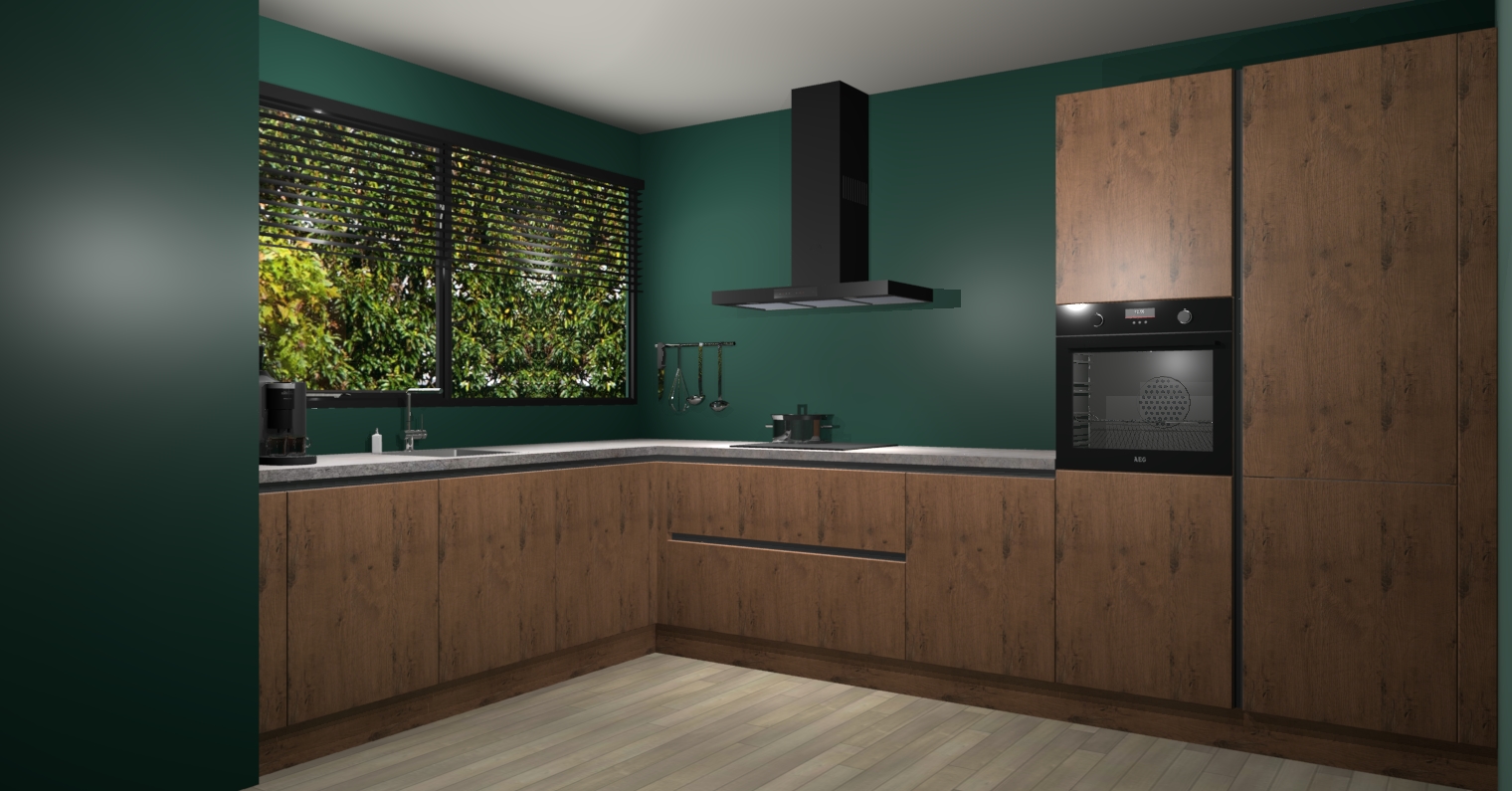 Met een modern, tijdloos design en ruime opslagruimte, zult u zich in no-time thuis voelen in uw nieuwe keuken. Uw leven wordt eenvoudiger met de soft-close deuren die voor het ultieme stille comfort zorgen - geen geluid dat u stoort terwijl u kookt. Ook is de keuken voorzien van 5 ingebouwde apparaten: een oven, inductie kookplaat, afzuigkap, vaatwasser en koelkast. Deze kunnen gemakkelijk na bestelling worden bijgewerkt naar AEG - waardoor uw luxe ervaring compleet is.