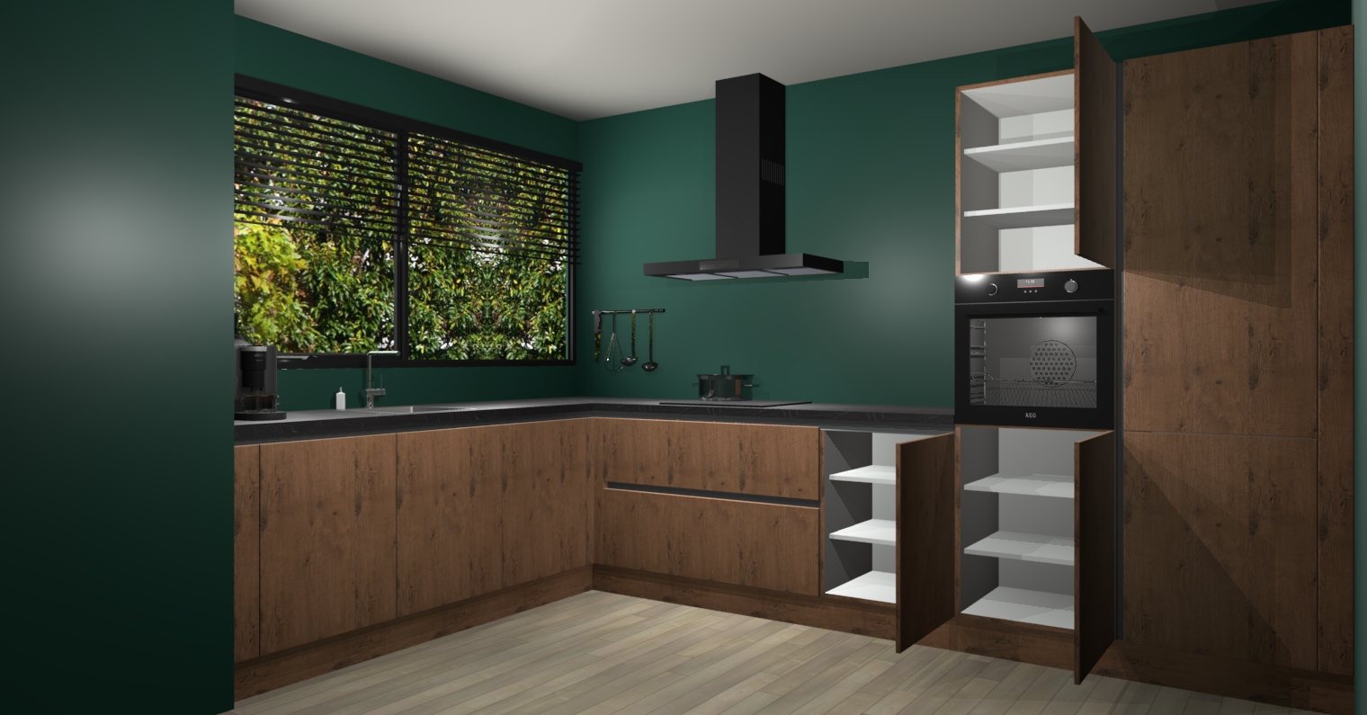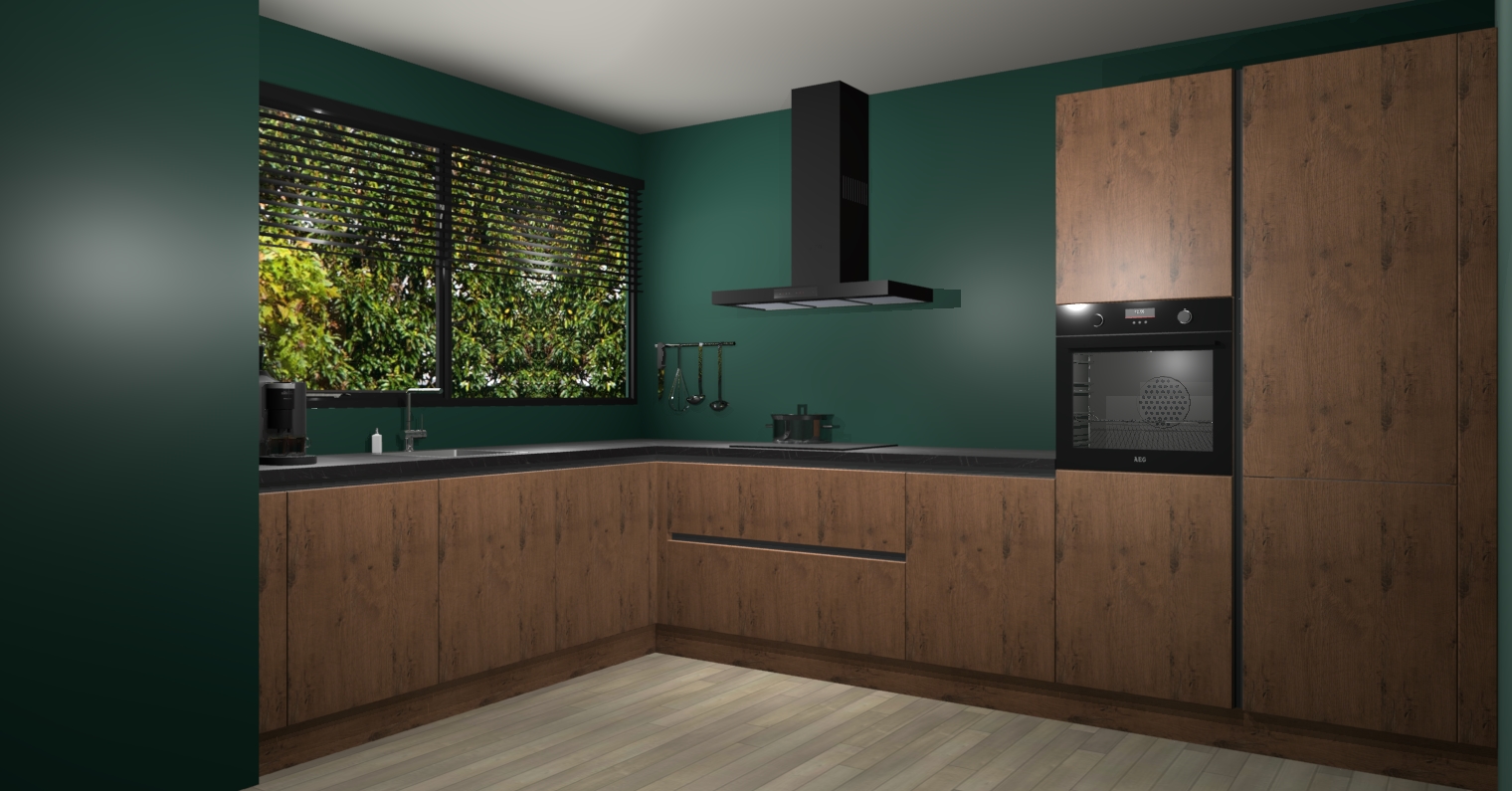 Met een modern, tijdloos design en ruime opslagruimte, zult u zich in no-time thuis voelen in uw nieuwe keuken. Uw leven wordt eenvoudiger met de soft-close deuren die voor het ultieme stille comfort zorgen - geen geluid dat u stoort terwijl u kookt. Ook is de keuken voorzien van 5 ingebouwde apparaten: een oven, inductie kookplaat, afzuigkap, vaatwasser en koelkast. Deze kunnen gemakkelijk na bestelling worden bijgewerkt naar AEG - waardoor uw luxe ervaring compleet is.