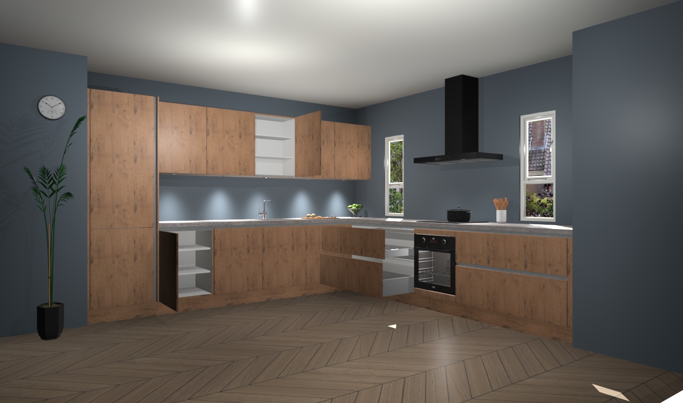 De astoria eiken greeploze keuken is een ideale hoekkeuken en heeft alle functies en apparatuur die u maar nodig kunt hebben. Bij de bestelling krijgt u een oven, inductiekookplaat, afzuigkap, vaatwasser en koelkast - deze kunnen desgewenst eenvoudig worden uitgebreid naar AEG na bestellen. Elke kast wordt ook voor gemonteerd geleverd met soft close deuren die jarenlang gebruik beloven. Stelt u zich voor dat u geen gedoe heeft met vervelende montage - vanaf het moment dat u uw bestelling plaats, duurt het slechts 7 weken voor het bij u thuis geleverd wordt.