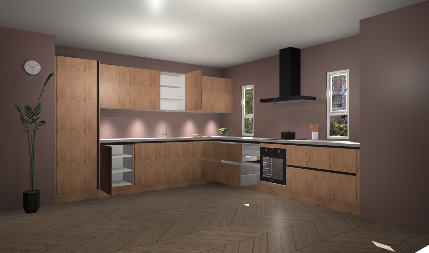 De astoria eiken greeploze keuken is een ideale hoekkeuken en heeft alle functies en apparatuur die u maar nodig kunt hebben. Bij de bestelling krijgt u een oven, inductiekookplaat, afzuigkap, vaatwasser en koelkast - deze kunnen desgewenst eenvoudig worden uitgebreid naar AEG na bestellen. Elke kast wordt ook voor gemonteerd geleverd met soft close deuren die jarenlang gebruik beloven. Stelt u zich voor dat u geen gedoe heeft met vervelende montage - vanaf het moment dat u uw bestelling plaats, duurt het slechts 7 weken voor het bij u thuis geleverd wordt.