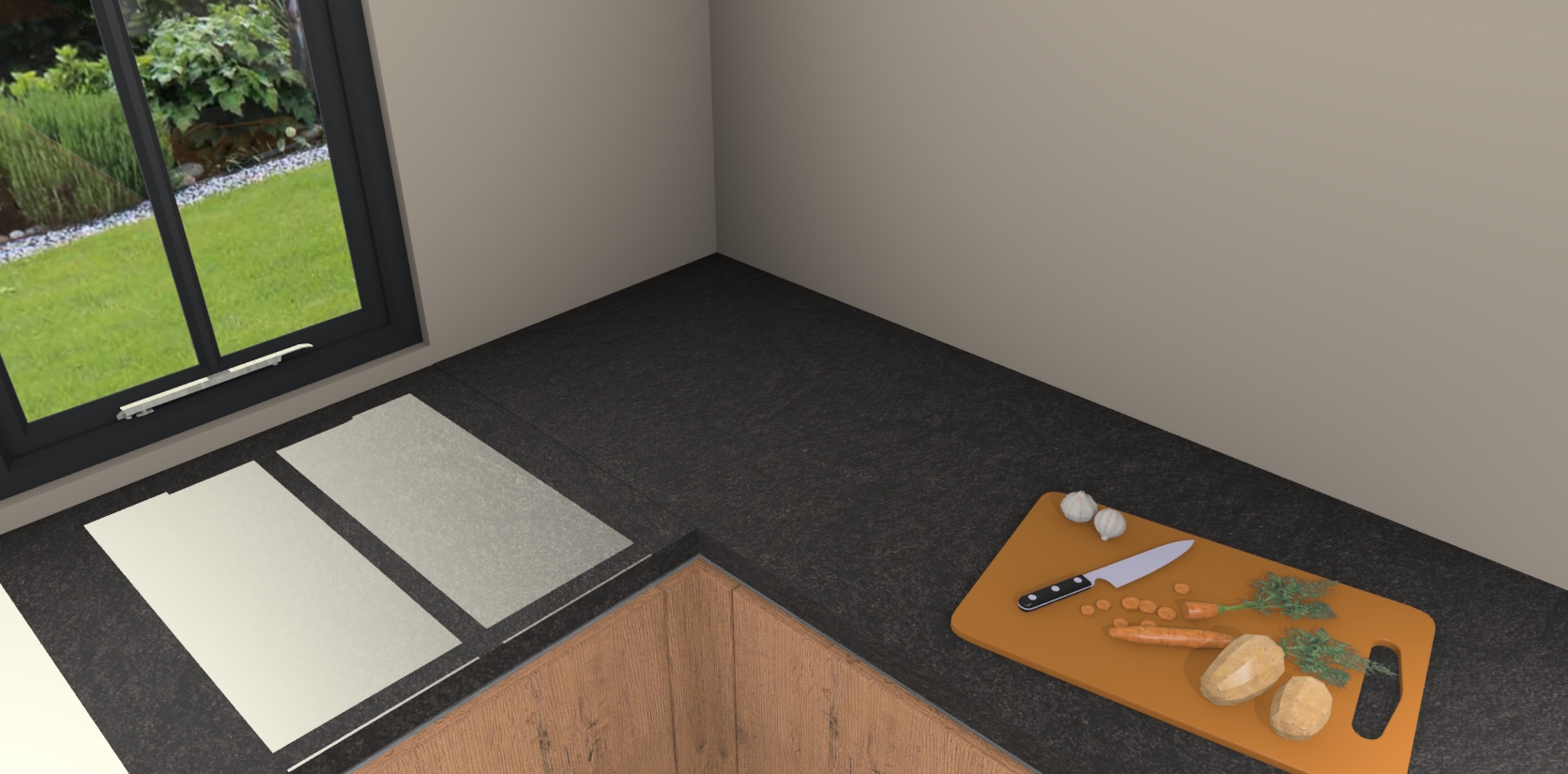 - Bij een hoekwerkblad zijn de hoeken in gevreesd en op maat gemaakt