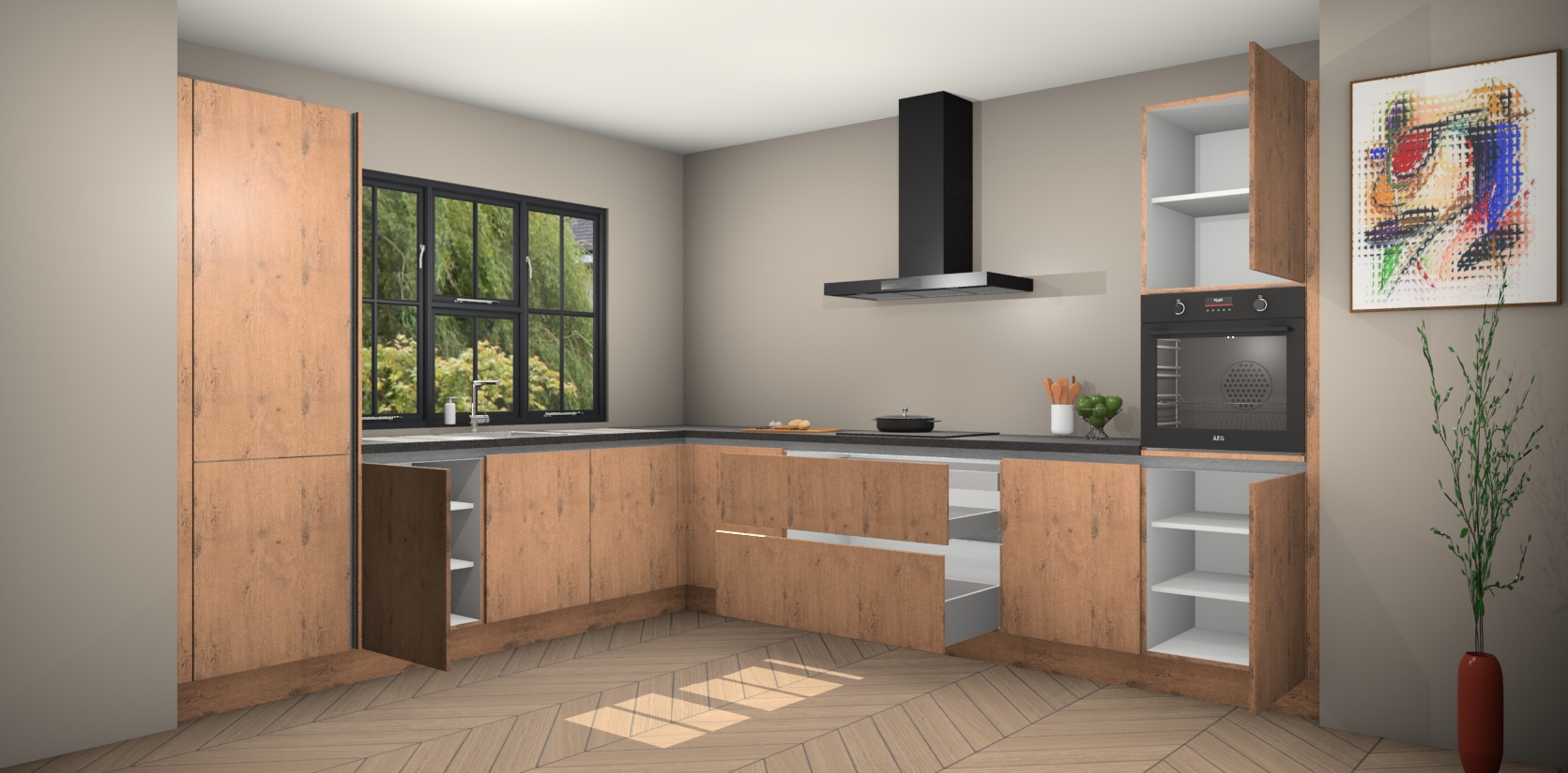 In deze box zijn alle kleuren verzameld van de deuren en werkbladen. Vraag de gratis kleurenbox aan en kijk thuis rustig verder!